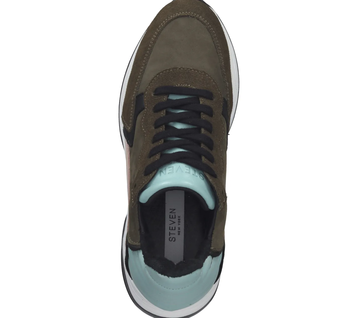 STEVEN NEW YORK Damen Echtleder-Schuhe Low-Top Sneaker mit Dämpfung Made in Portugal SNY11000296-03005-348 Khaki/Rosa/Blau