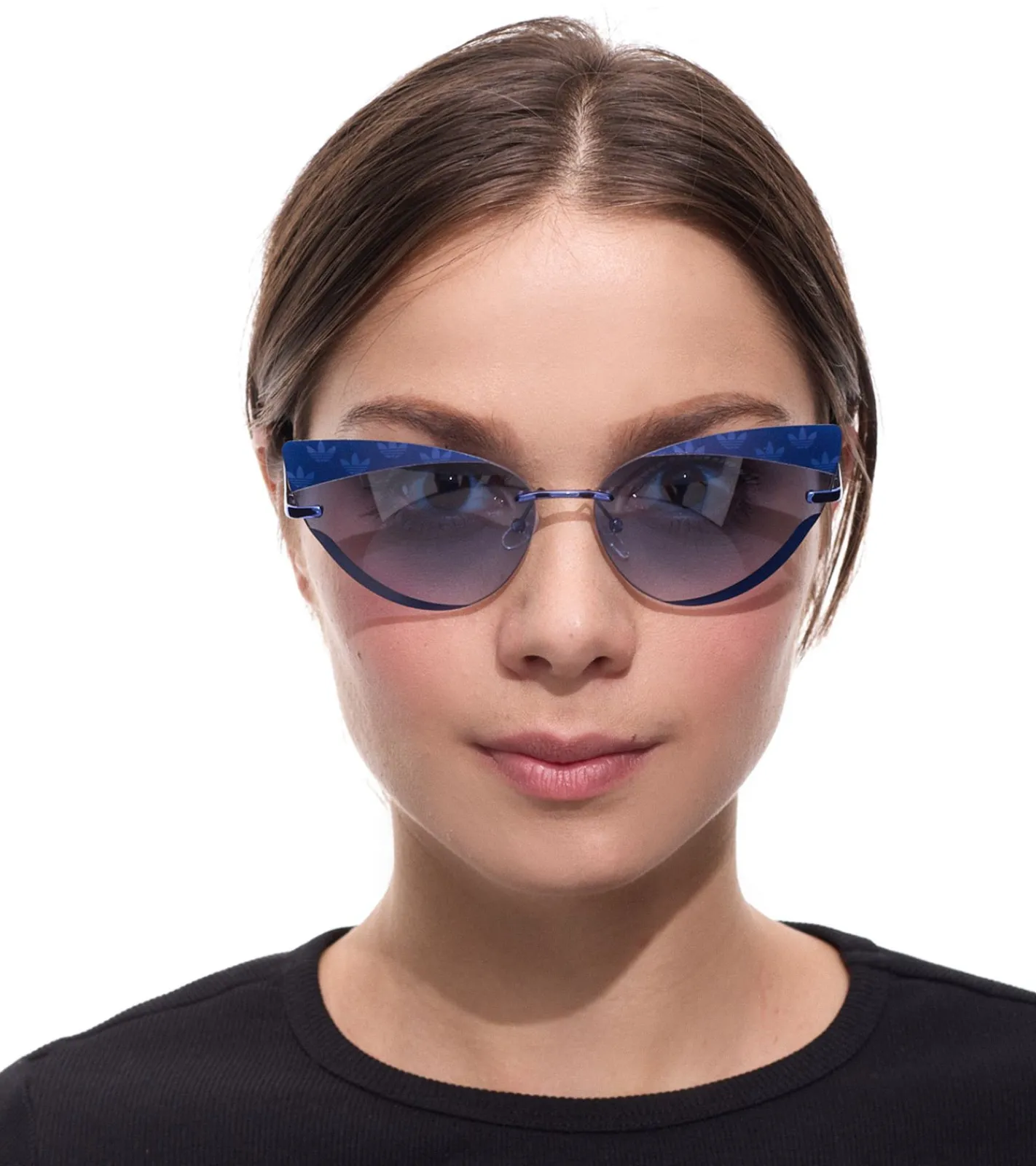 adidas Damen Sonnen-Brille randlose Katzenaugen-Brille Gradient-Gläser 100% UVA & UVB Schutz Freizeit-Brille EW3519 Blau