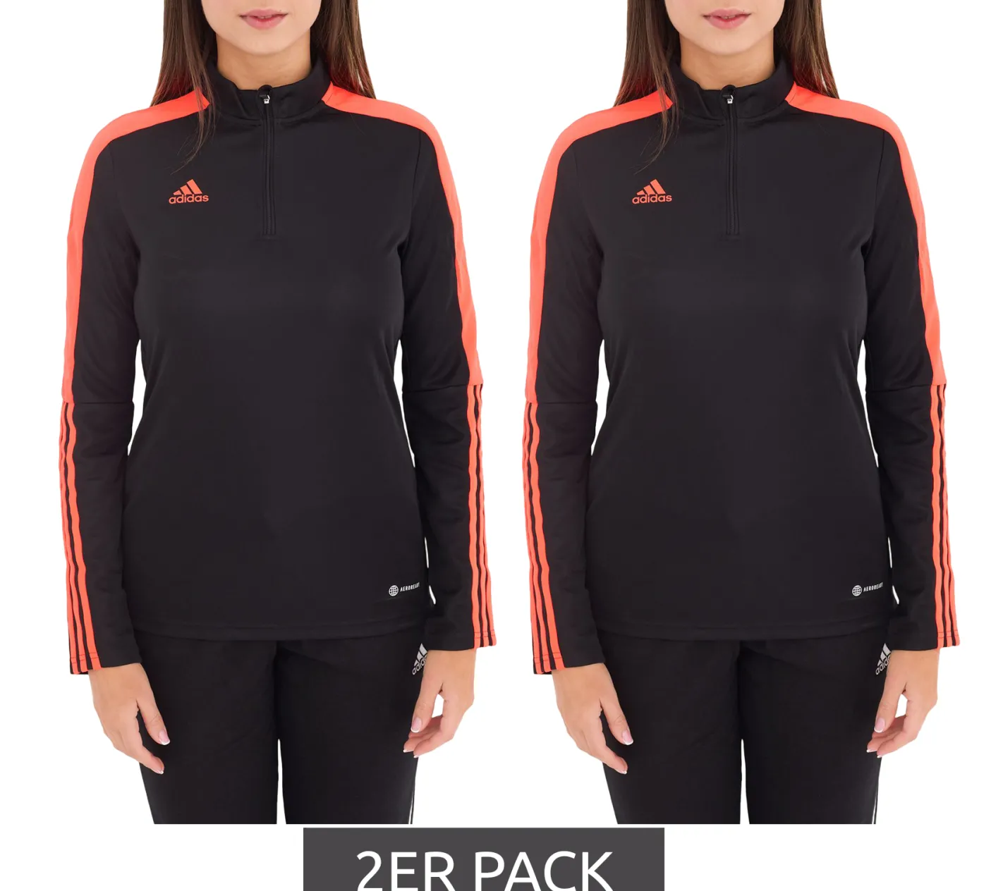 2er Sparpack adidas Tiro LS Damen Trainings-Sweatshirt mit AEROREADY Technologie Half-Zip Sweatshirt HU0319 Schwarz