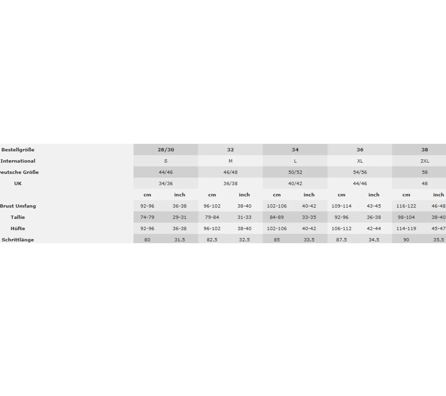 - Größentabelle siehe Bilder