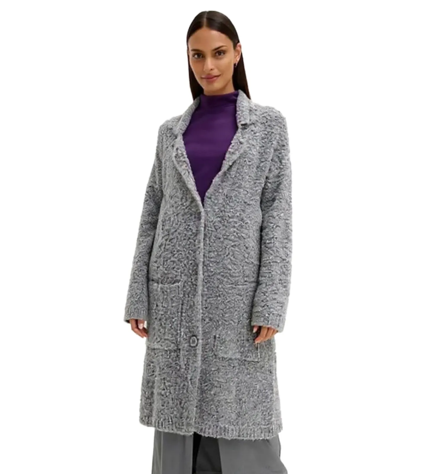 Damen Strick-Jacke lange Strickjacke mit Taschen und Wollanteil 917644 Grau