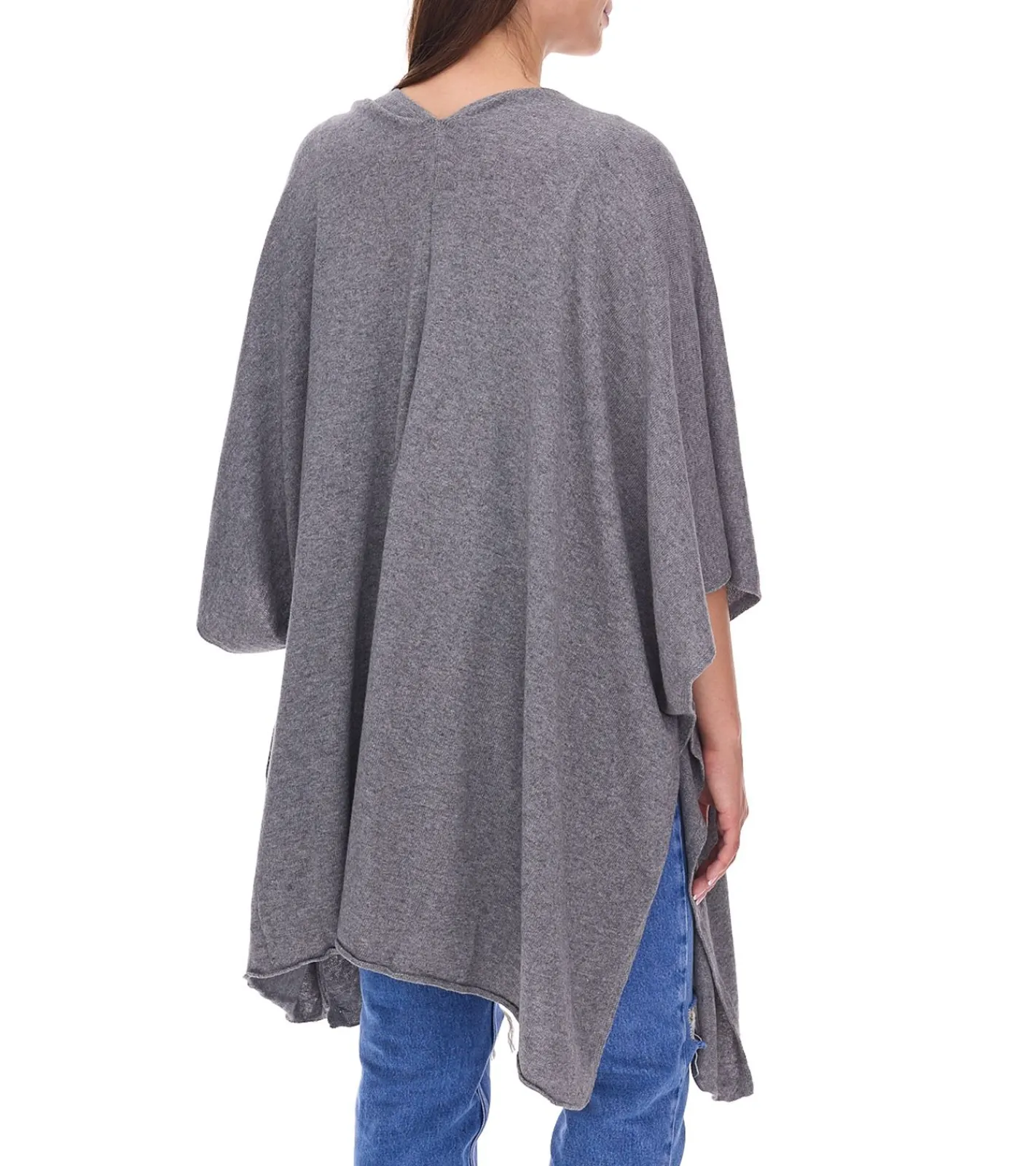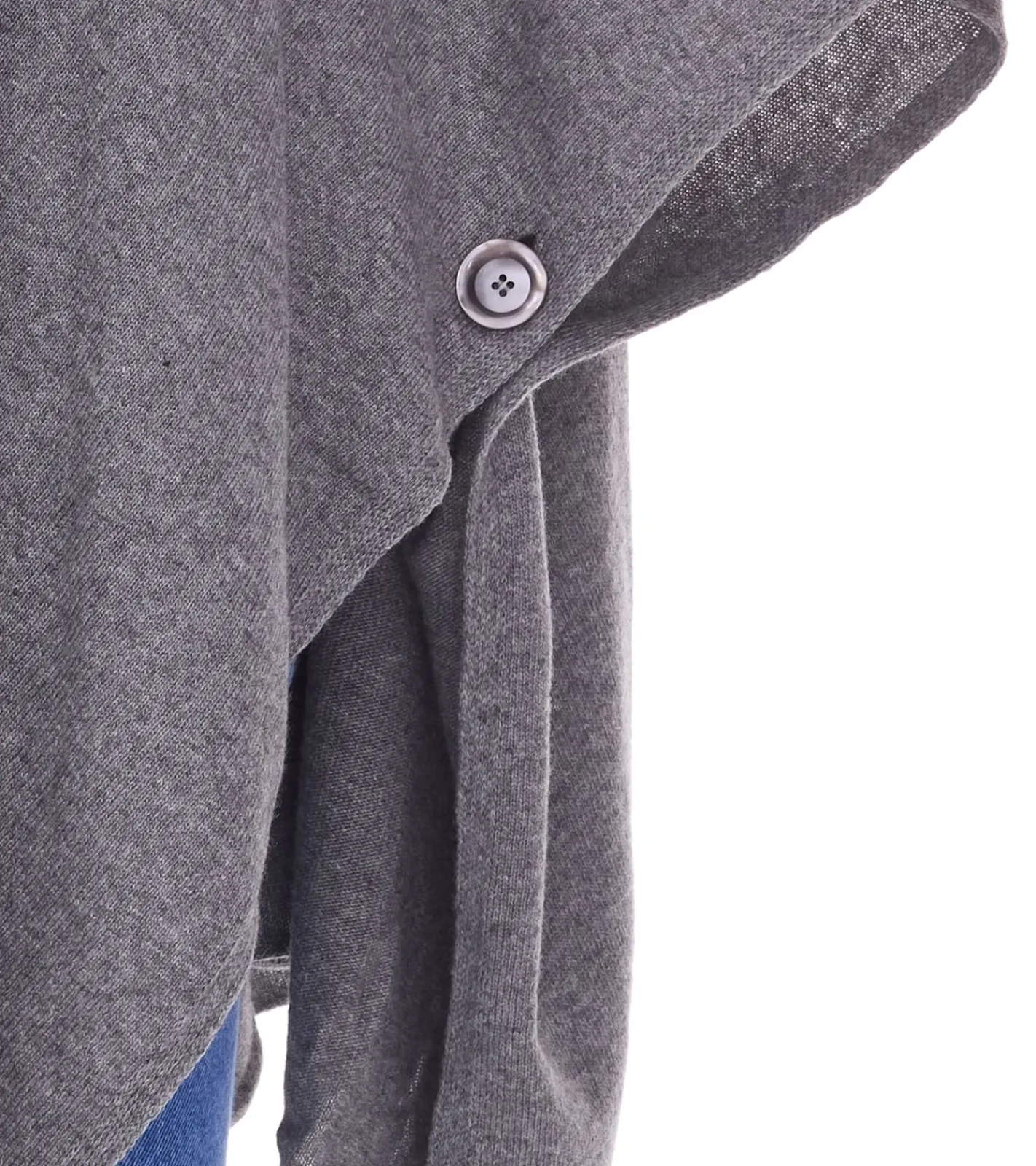 ZWILLINGSHERZ Damen Poncho mit Kaschmir hochwertiges Cape Tunika mit Ärmeln 8029P Grau