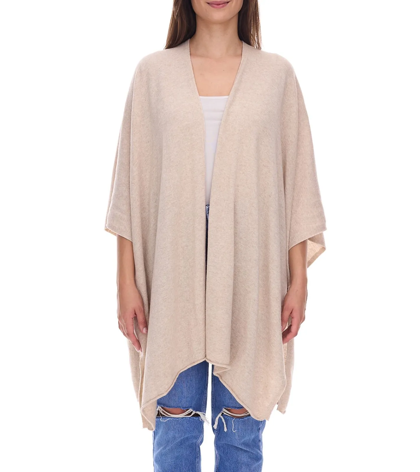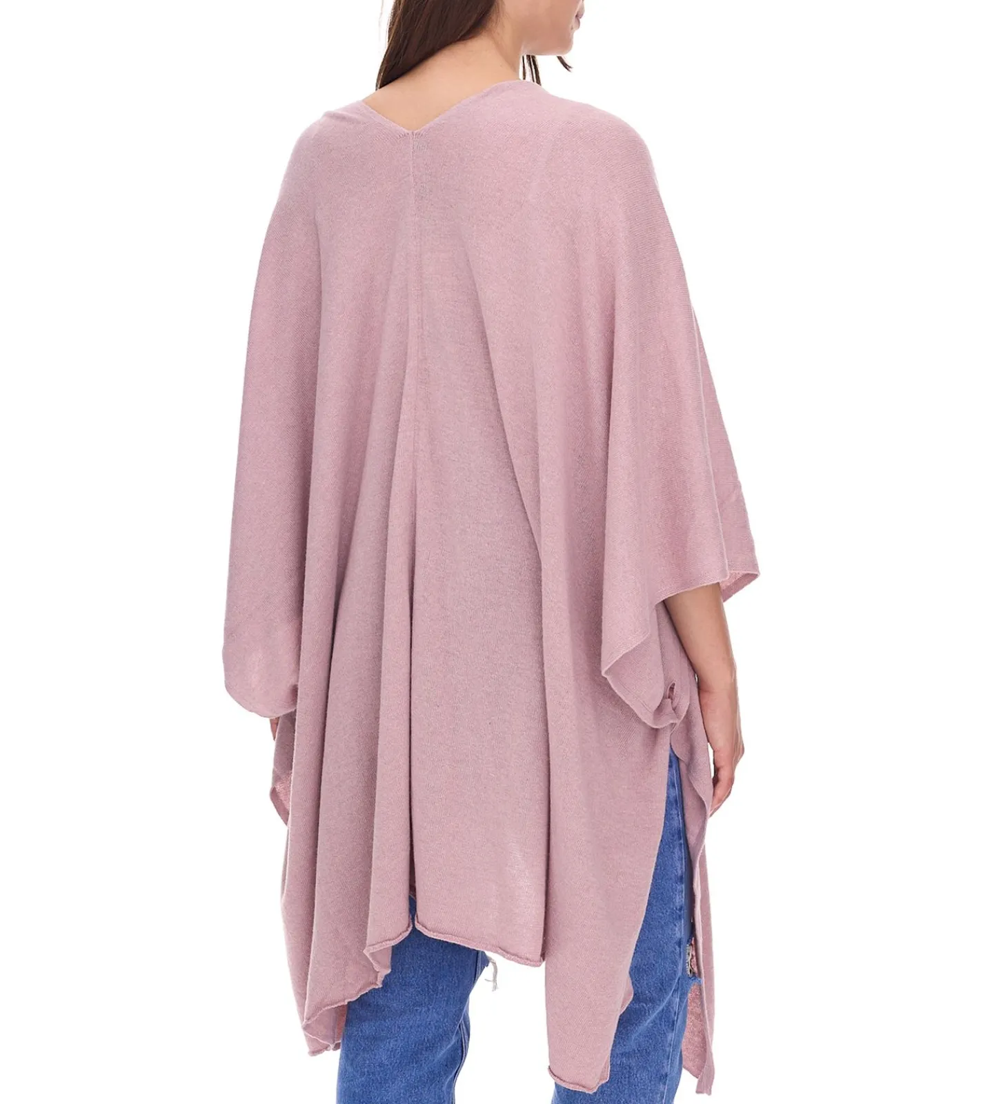 ZWILLINGSHERZ Damen Poncho mit Kaschmir hochwertiges Cape Tunika mit Ärmeln 8029P in Rosa, Rot, Beige, Grau, Blau
