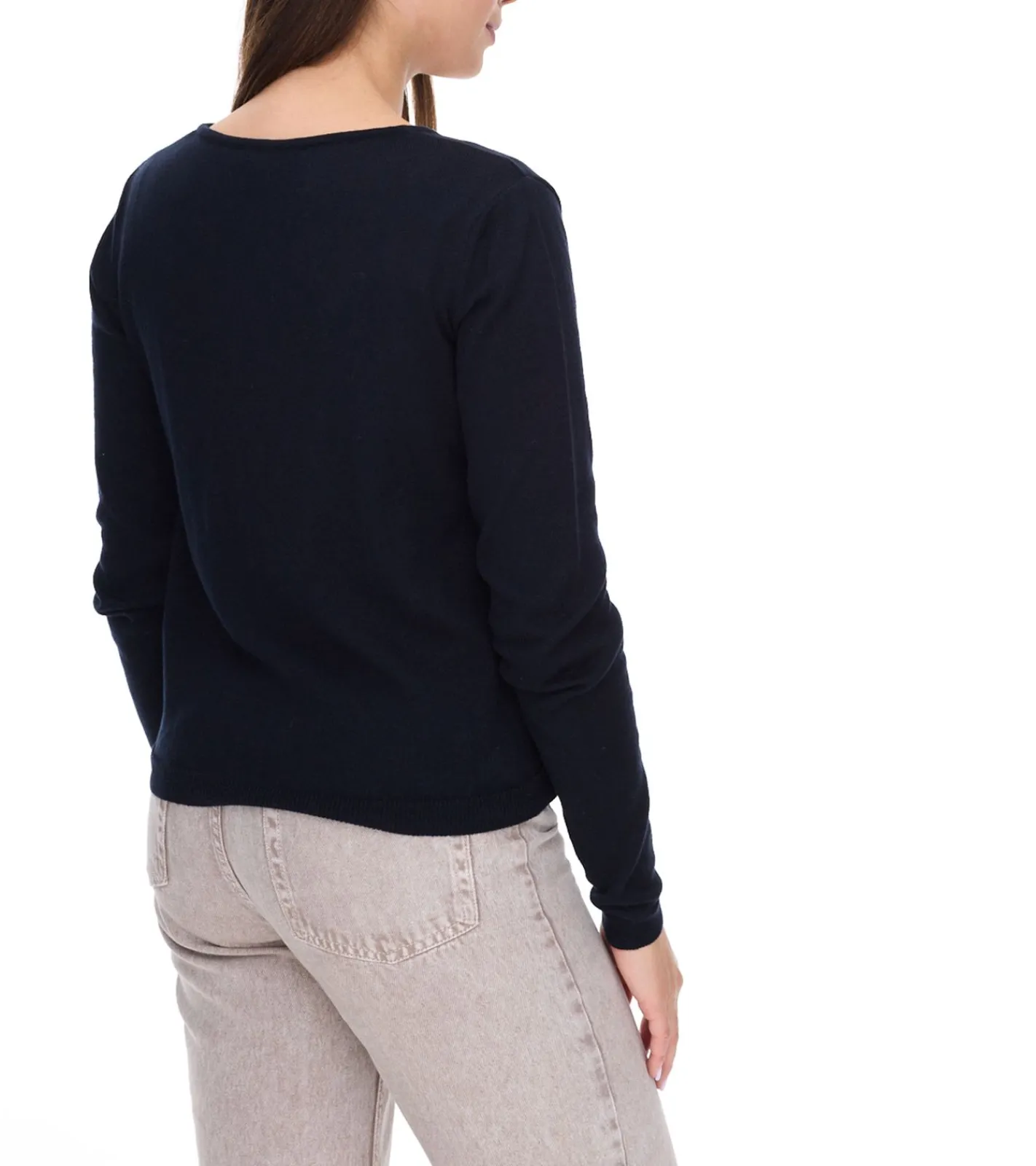 vestino Damen Bolero Strick-Jacke mit schmalen Rippbündchen Cardigan 901318 Navy
