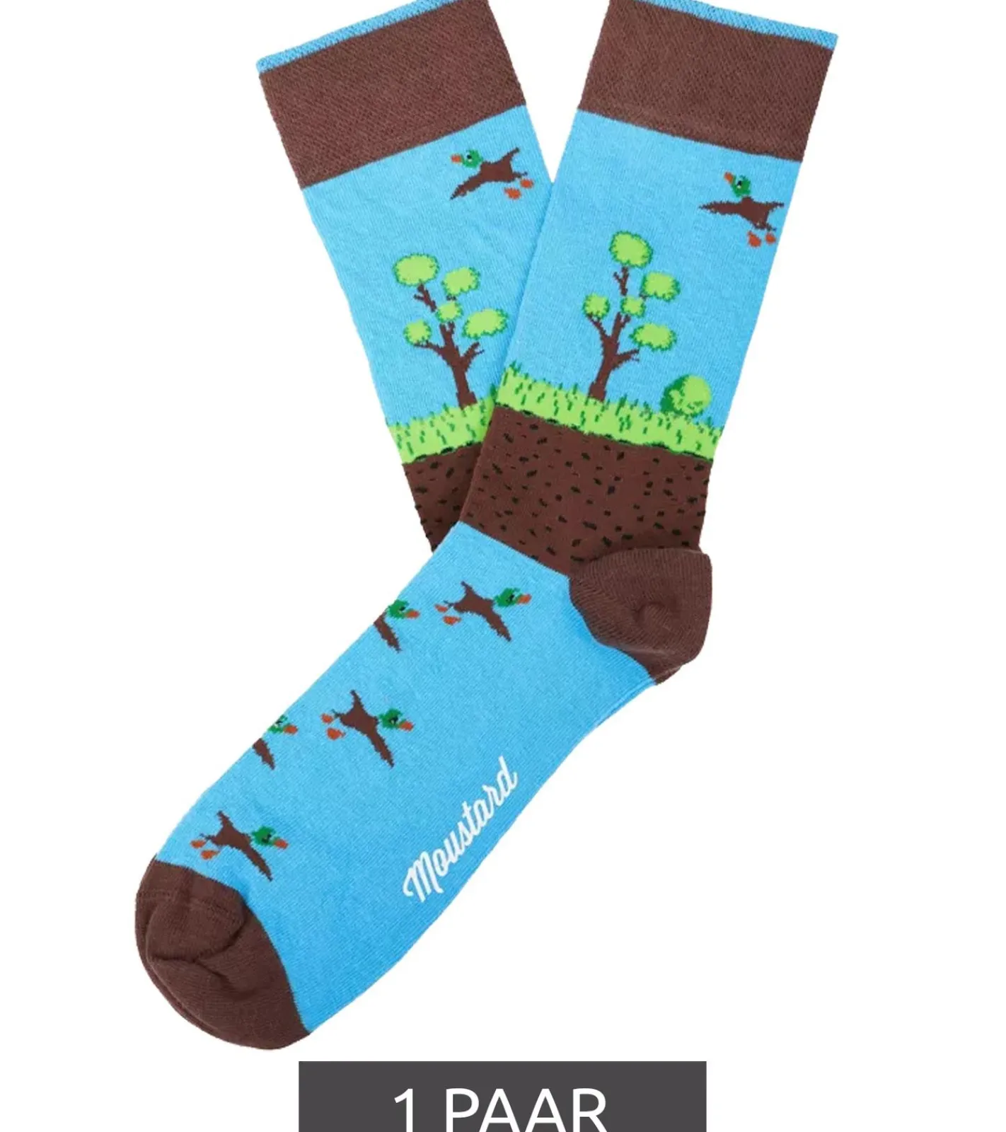 1 Paar Moustard Duckhunt Baumwoll-Socken mit Enten und Natur-Print gemusterte lange Strümpfe 22S-DUCK Blau/Grün/Braun