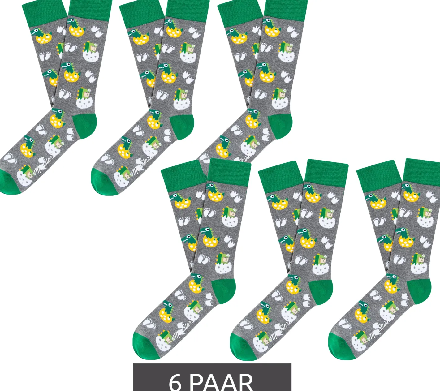 6 Paar Moustard Dinosaur Egg Hatch Baumwoll-Socken mit schlüpfenden Dinosauriern gemusterte lange Strümpfe 18S-EGG Grau/Weiß/Grün