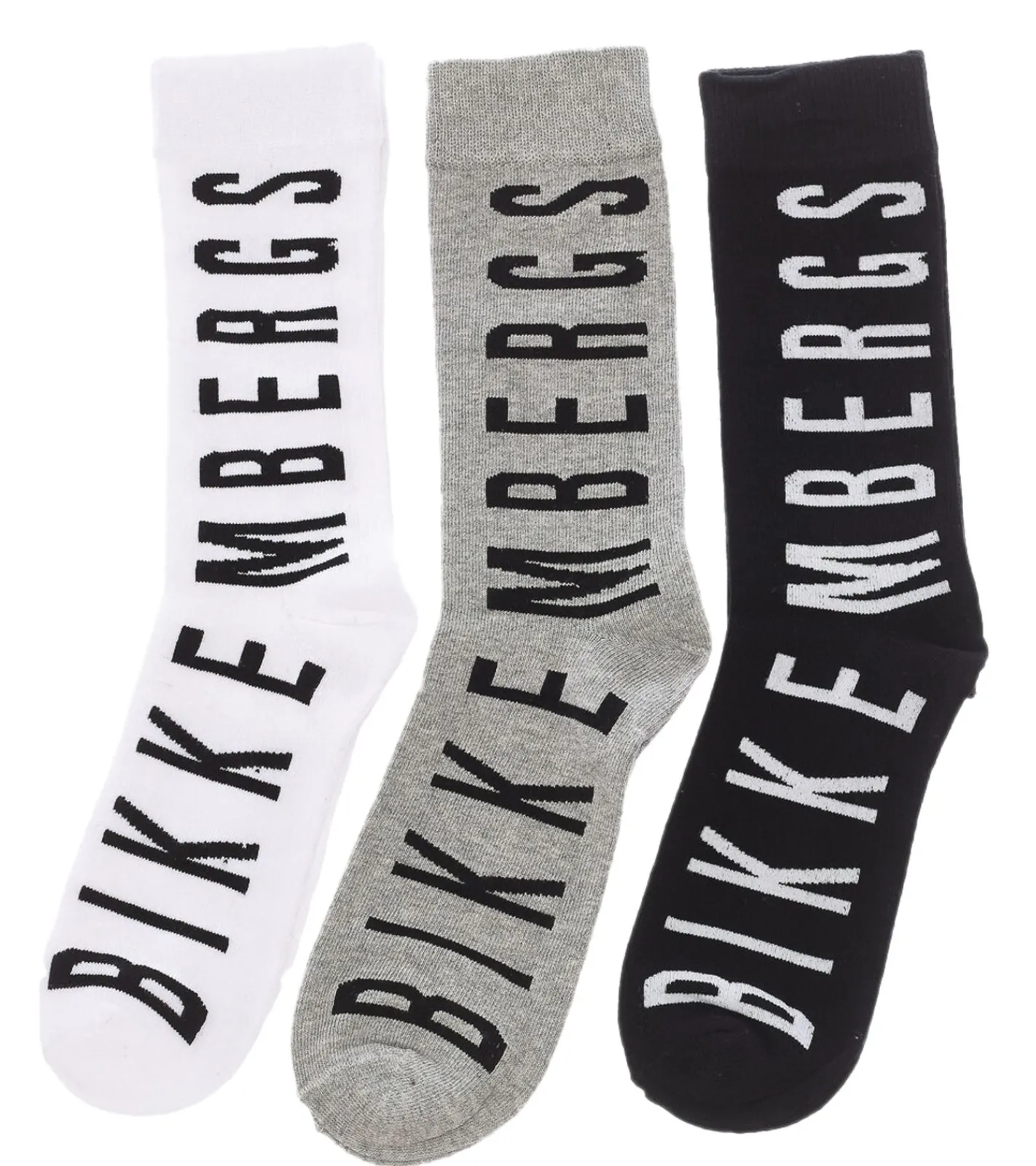 3 Paar BIKKEMBERGS Surtido Herren Tennis-Socken mit großem Schriftzug Baumwoll-Strümpfe BK_014 Schwarz/Grau/Weiß
