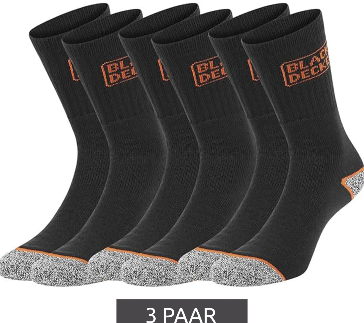 3 Paar BLACK+DECKER Herren Arbeits-Socken mit Cushion Terry Baumwoll-Socken Work-Socken OEKO-TEX Standard 100 BX/OBII in Anthrazit/Schwarz, Schwarz/Meliert oder Schwarz/Grau