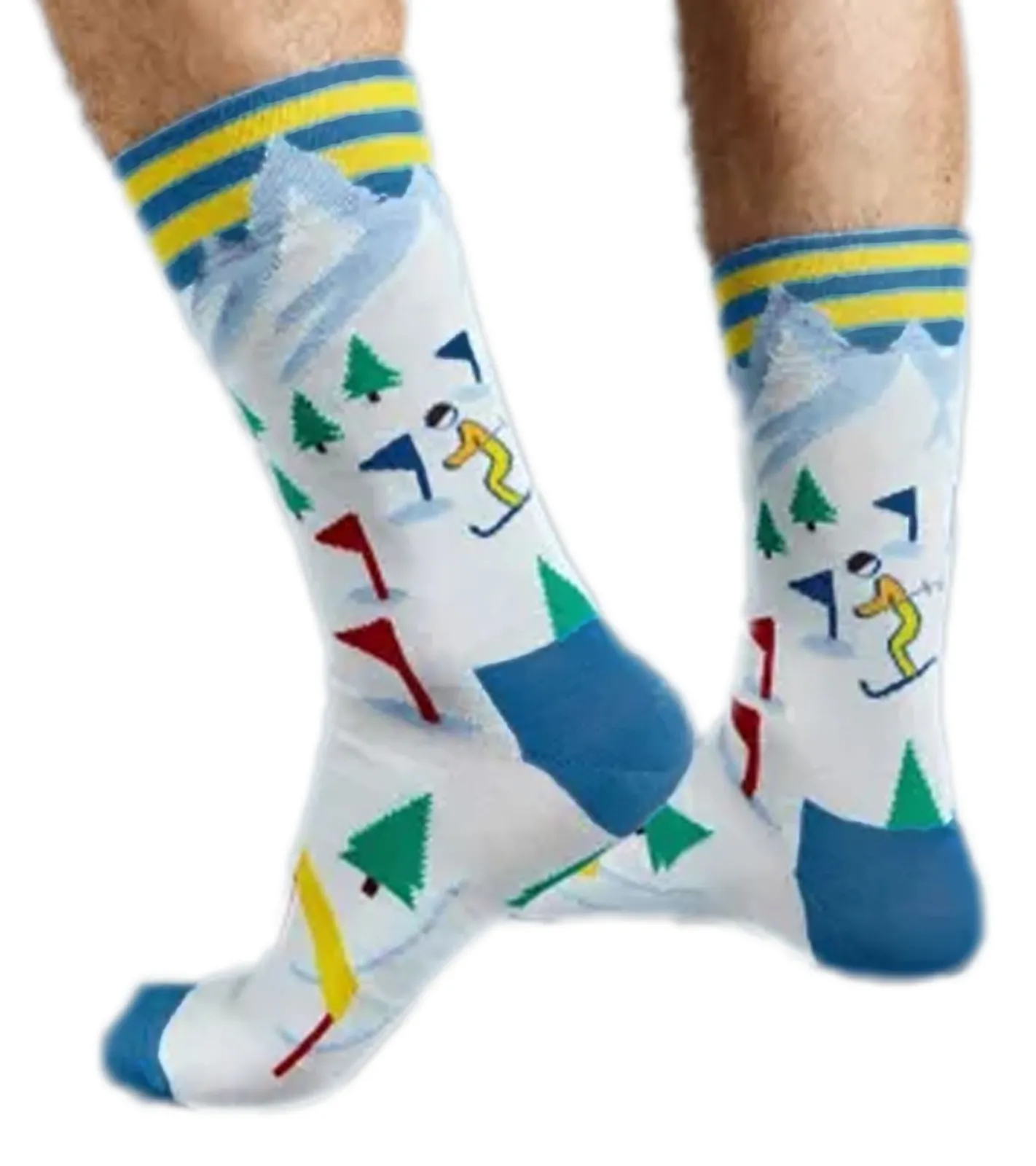 6 Paar Moustard Ski Herren Baumwoll-Socken mit Skipisten-Print gemusterte lange Strümpfe 17S-SKI_02 Weiß/Dunkelblau/Rot/Grün