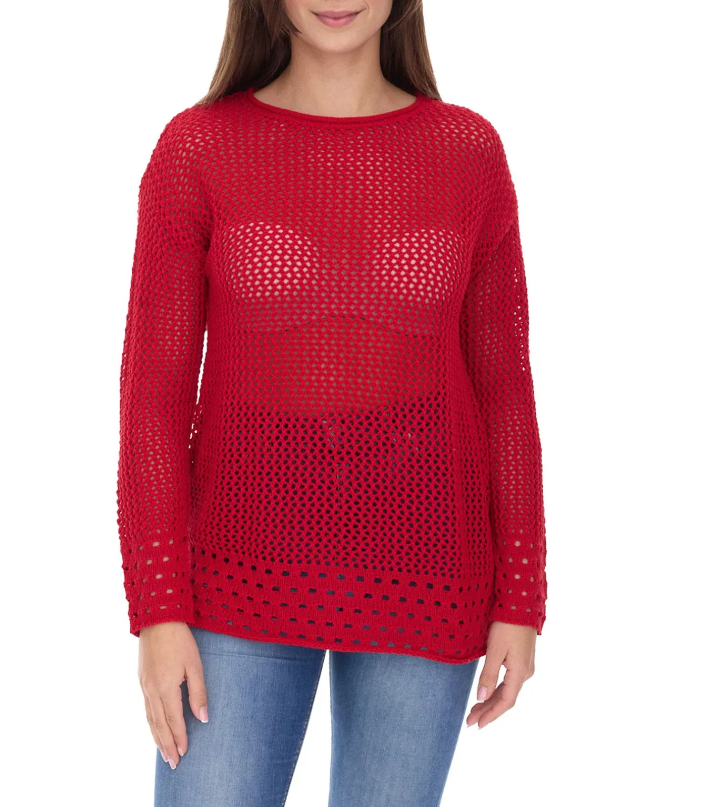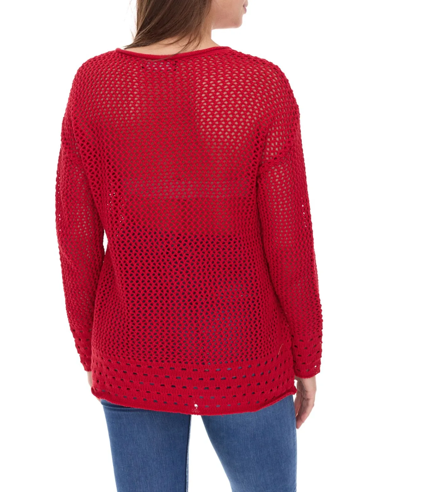Aniston CASUAL Damen Strick-Pullover mit Baumwollanteil Grobstrick-Pullover Langarm-Shirt 83680609 Rot