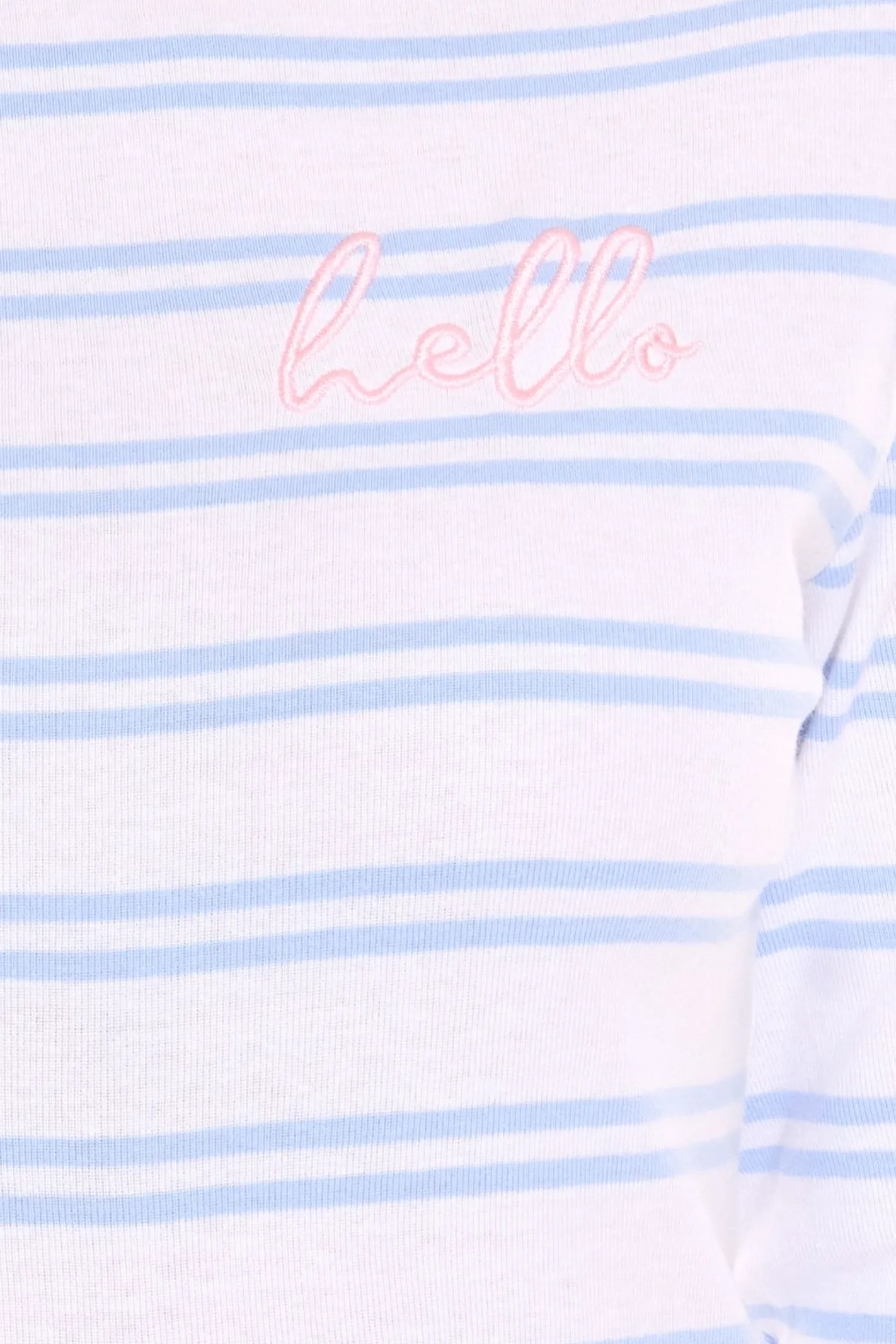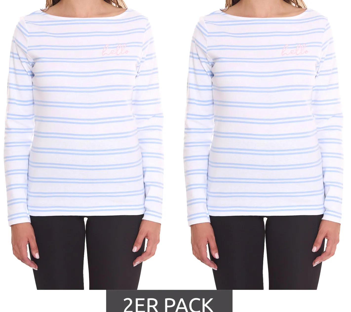 2er Sparpack DELMAO Damen Langarm-Shirt gestreiftes Baumwoll-Sweatshirt 85025237 Blau/Weiß