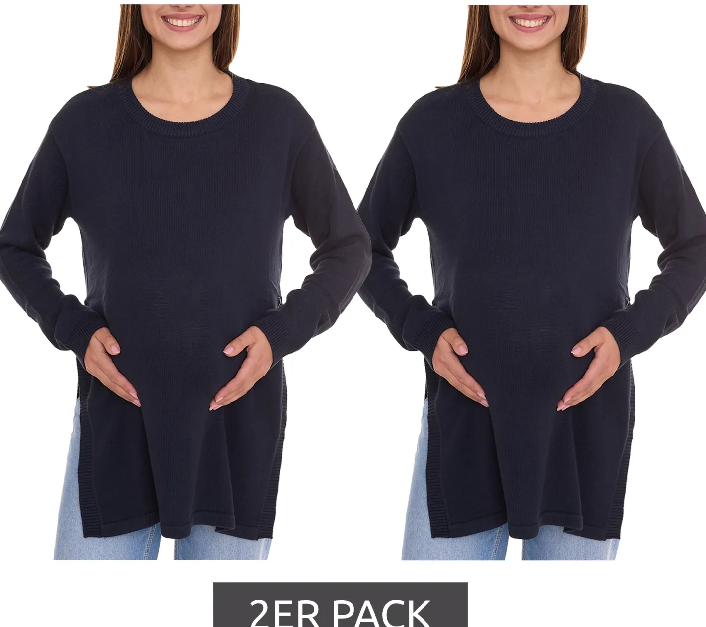 2er Pack neun 9 monate Damen Strickpullover Umstandsmode Schwangerschafts-Pulli 24659305 Dunkelblau
