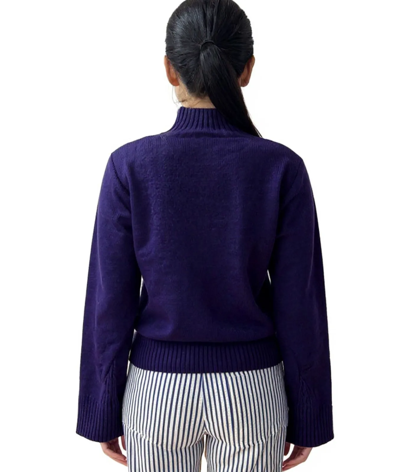 Damen Sweatshirt Strick-Pullover mit Trompeten-Ärmel Sommer-Pullover Langarm-Shirt 920021 Lila