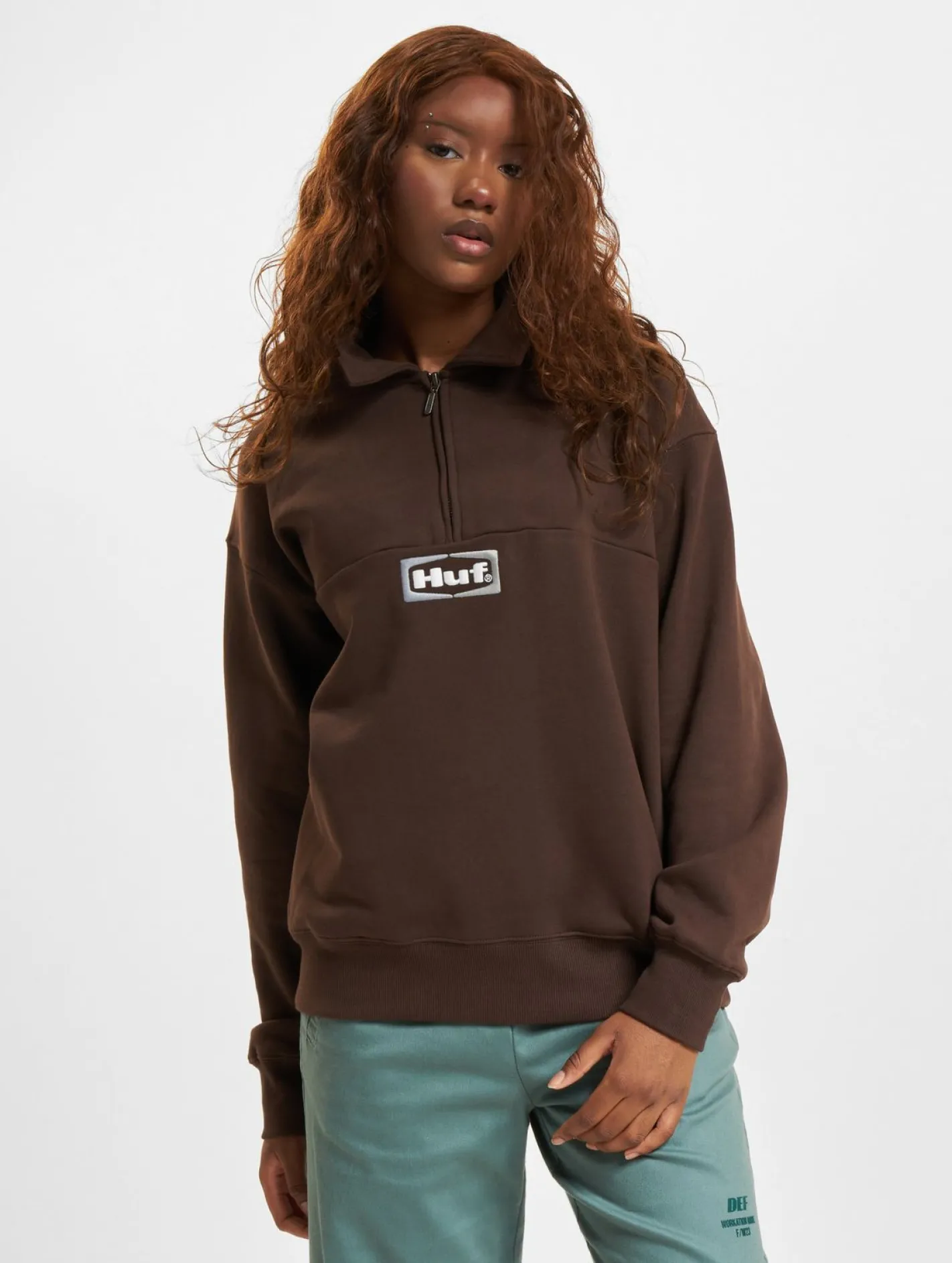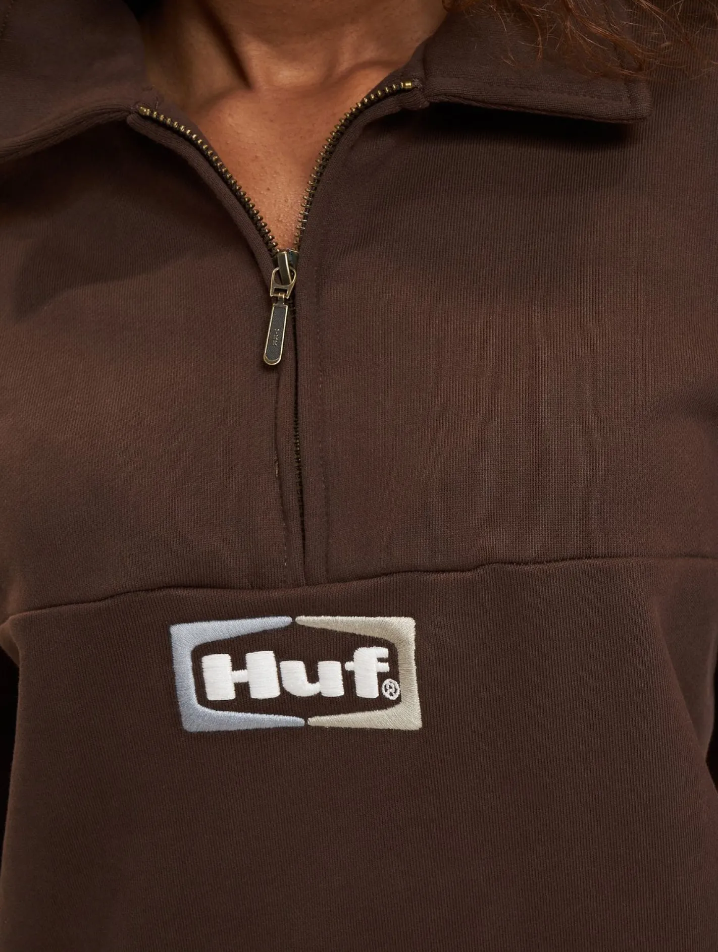 HUF Slate Fleecepullover mit Viertelreißverschluss, espresso