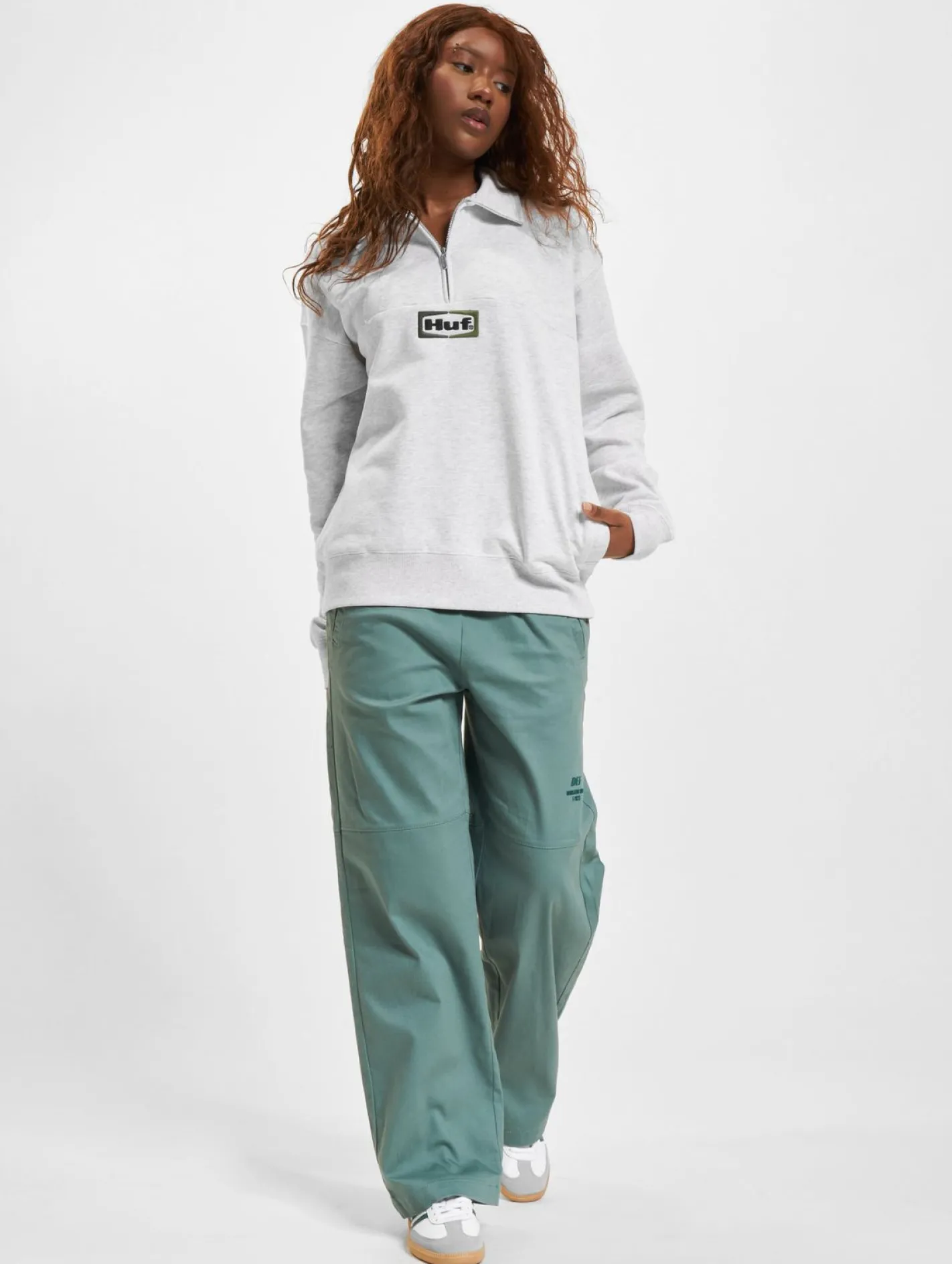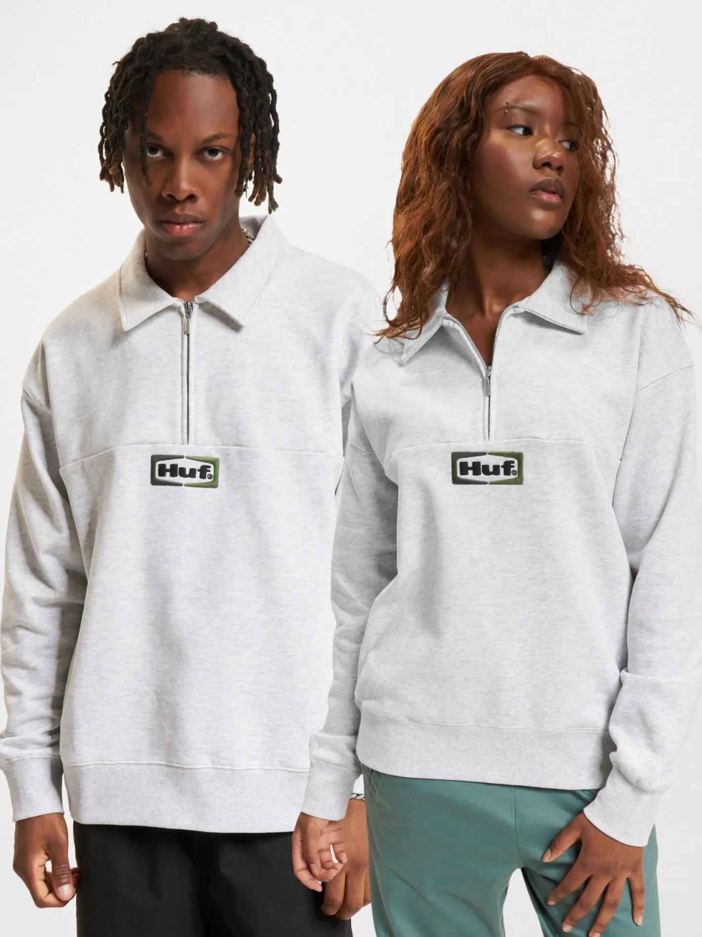 HUF Slate Quarter Zip Fleece Pullover grau meliert