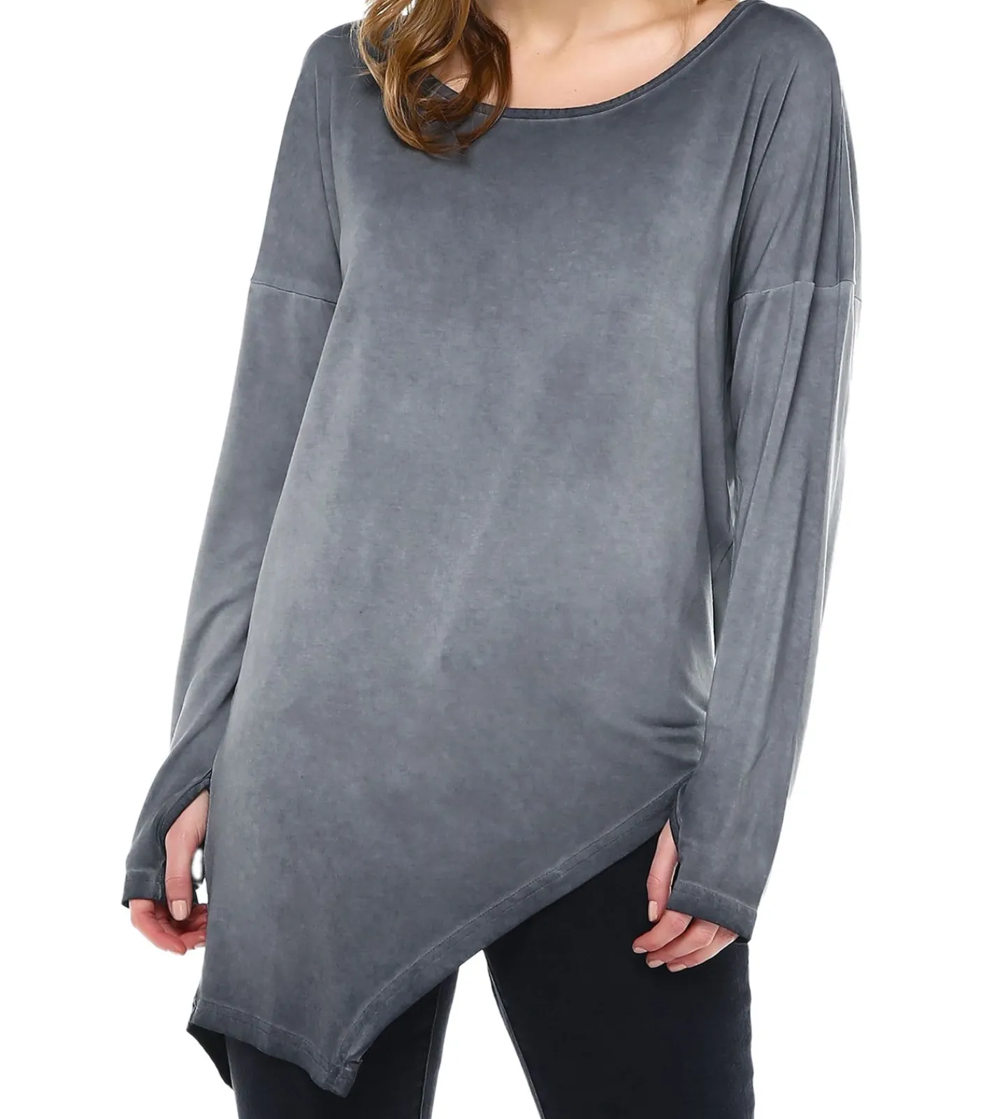 ROCKUPY Damen Longsleeve asymmetrisches Langarm-Shirt mit Daumenlöchern 323869 Grau