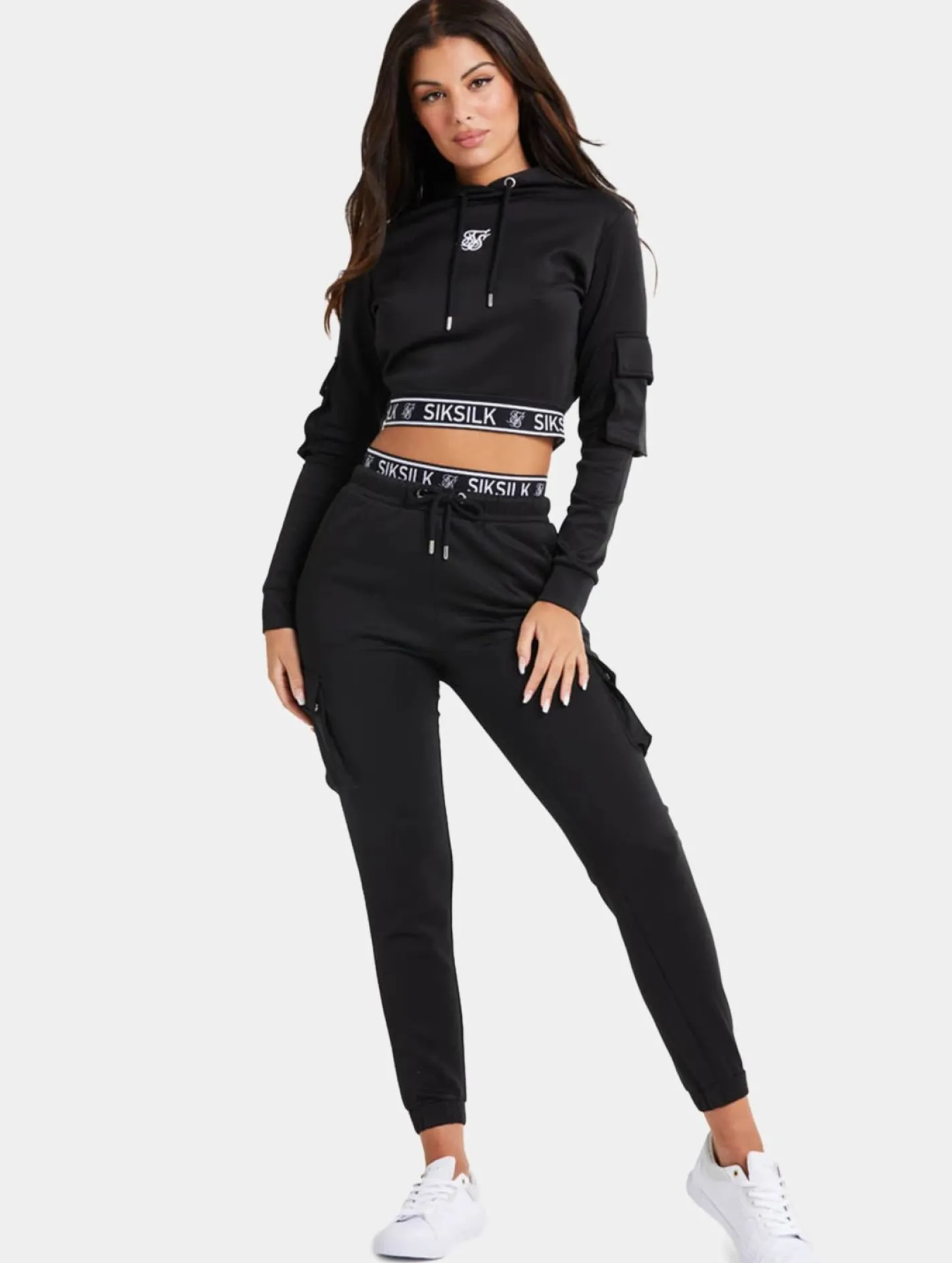 Sik Silk Cargo Cropped Hoodie schwarz
