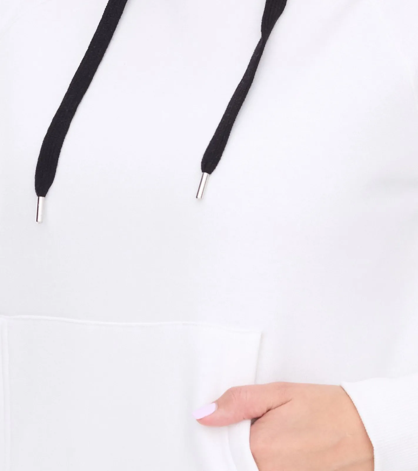 vestino Damen Hoodie mit Kontrast-Streifen Kapuzen-Pullover Alltags-Pulli 900031 Weiß