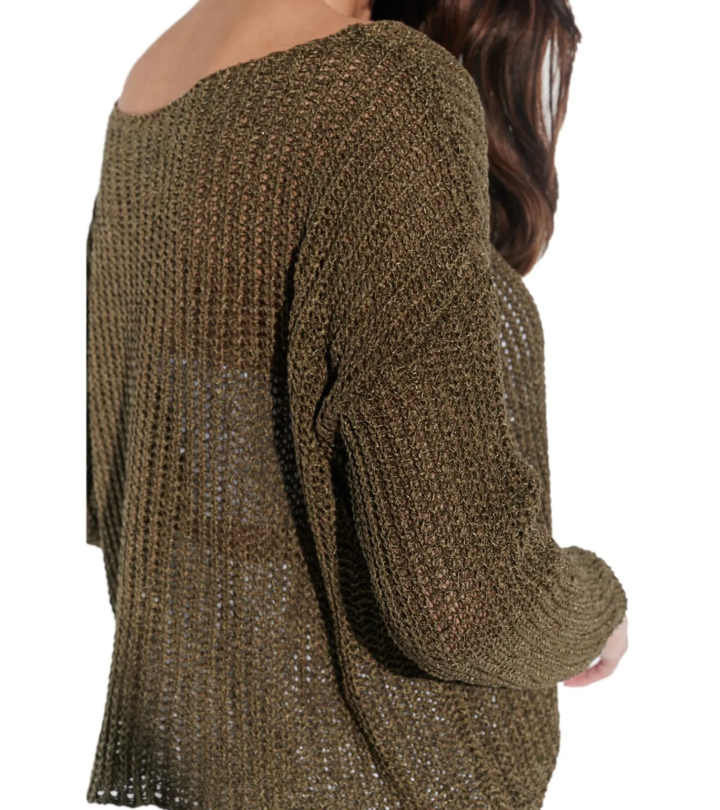 vestino Damen Strick-Pullover mit Netz-Struktur Alltags-Pulli Sweater 900709 Khaki
