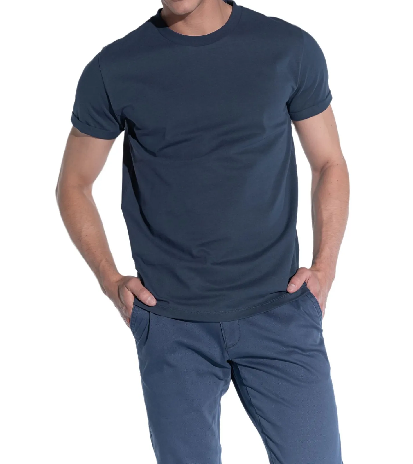 COURSE Herren Basic T-Shirt mit Ärmelaufschlag Rundhals-Shirt aus Baumwolle 901060 Dunkelblau