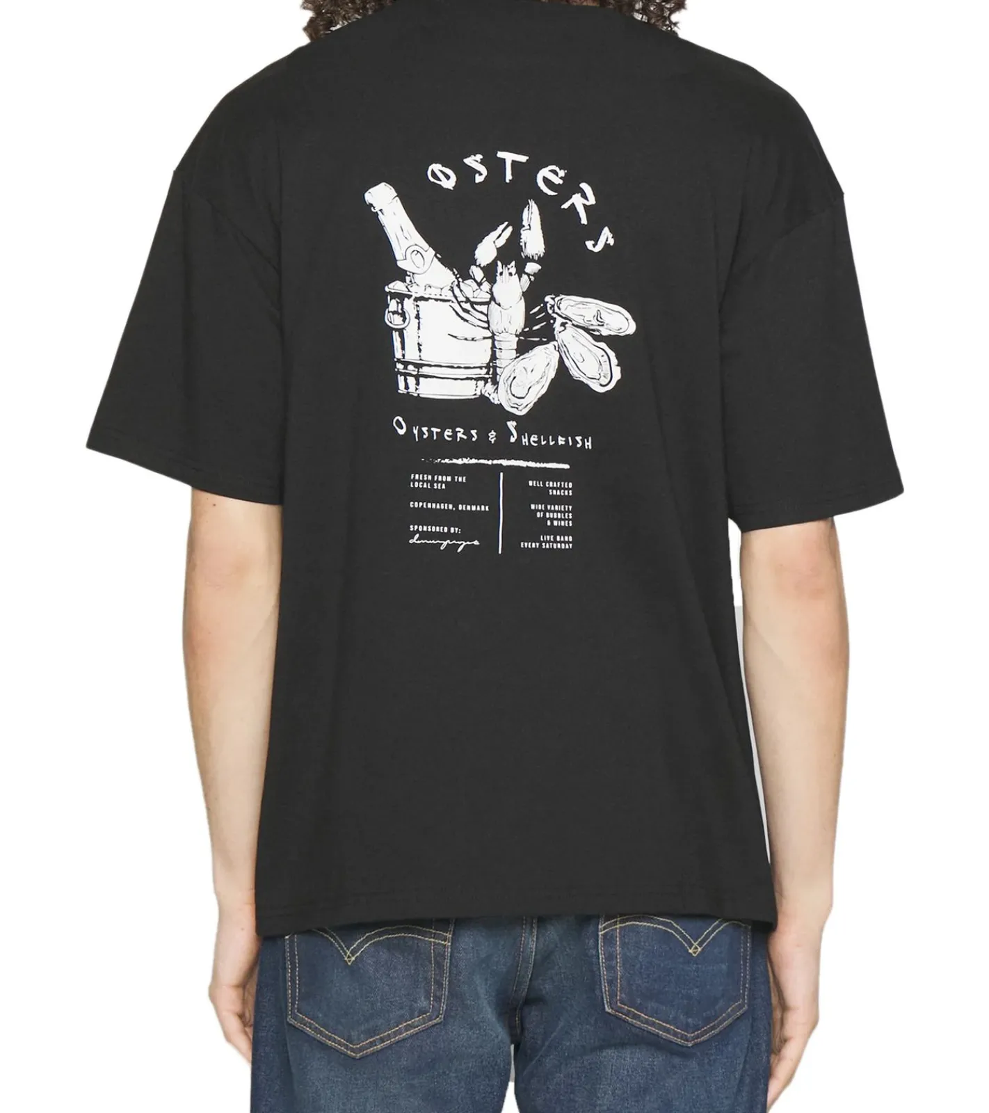 Denim Project Oysters Herren Baumwoll-Shirt Kurzarm-Shirt T-Shirt Rundhals-Shirt DP-10023-099 001 Schwarz