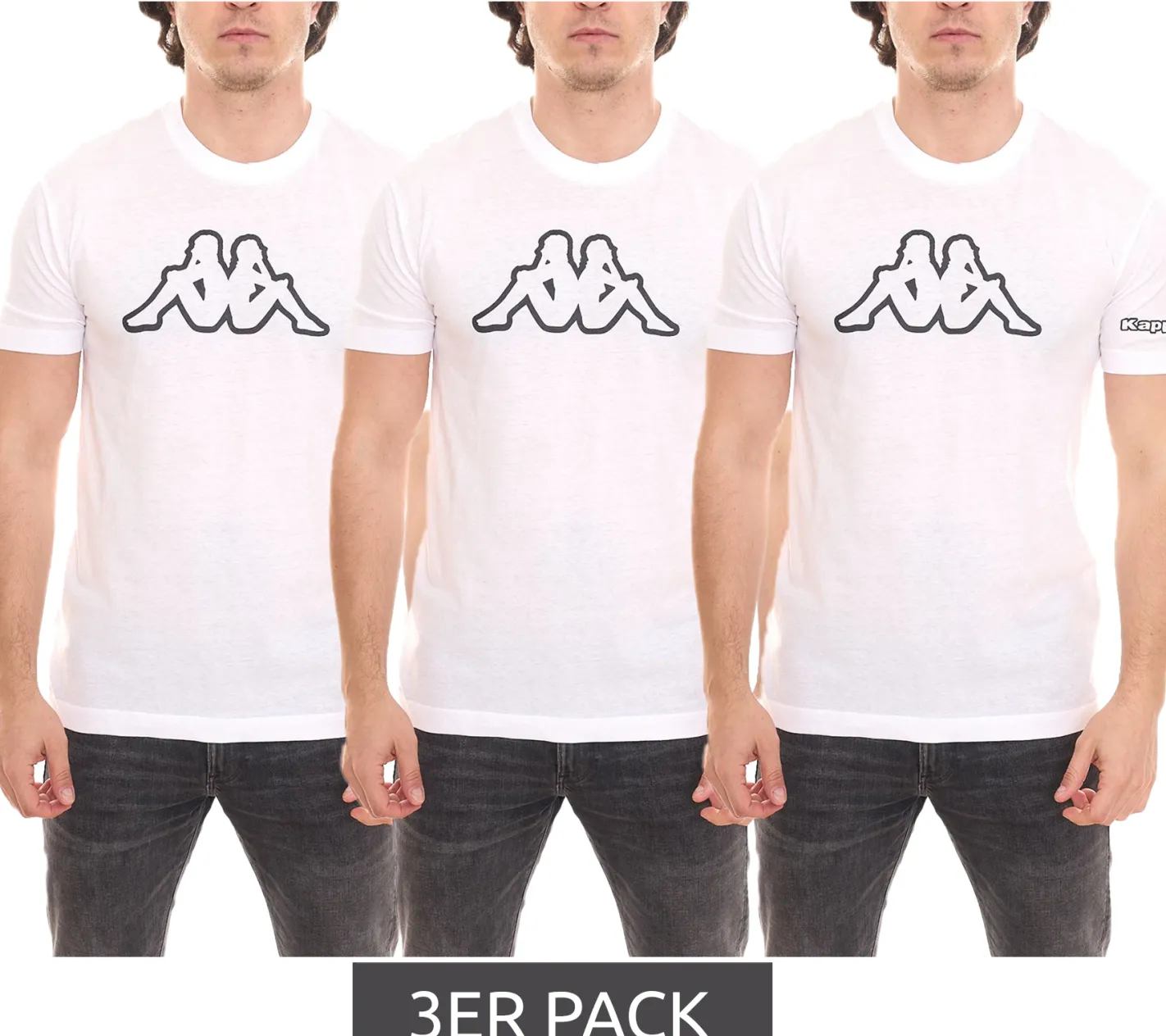 3er Pack Kappa Herren Baumwoll-Shirt Rundhals-Shirt mit großem Logo-Patch Kurzarm-Shirt 11-4001 A8A Weiß