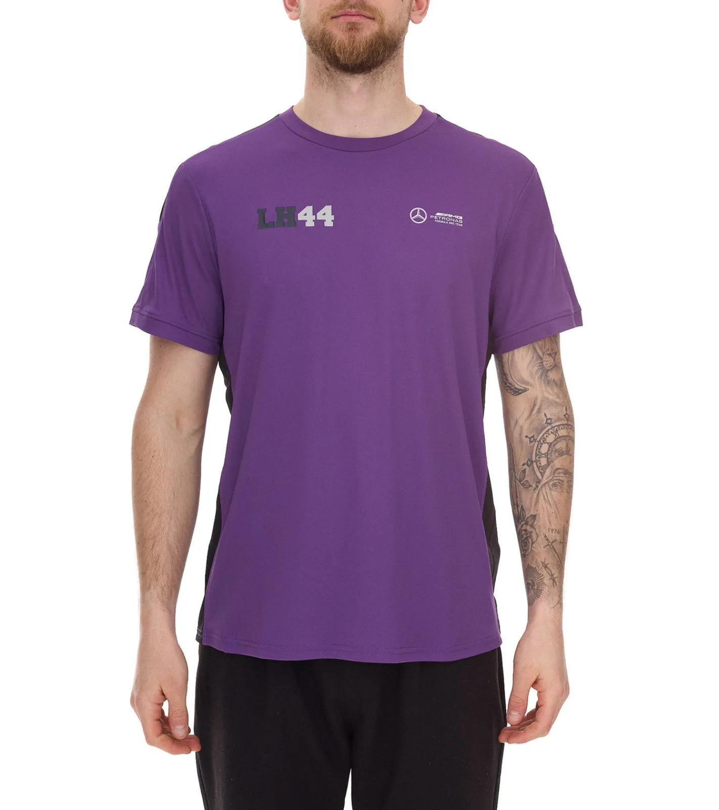 2er Pack Mercedes-Benz AMG Petronas F1 MAPF1 FW George Russell Herren Basic T-Shirt mit LH44-Print Alltags-Shirt 701222303 001 Lila