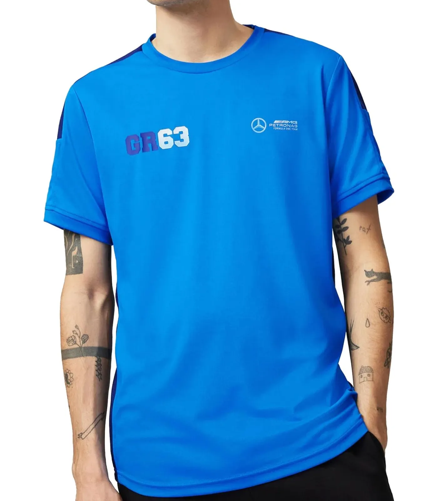 Mercedes-Benz AMG Petronas F1 MAPF1 FW George Russell Herren Basic T-Shirt mit GR63-Print Alltags-Shirt 701222311 001 Blau