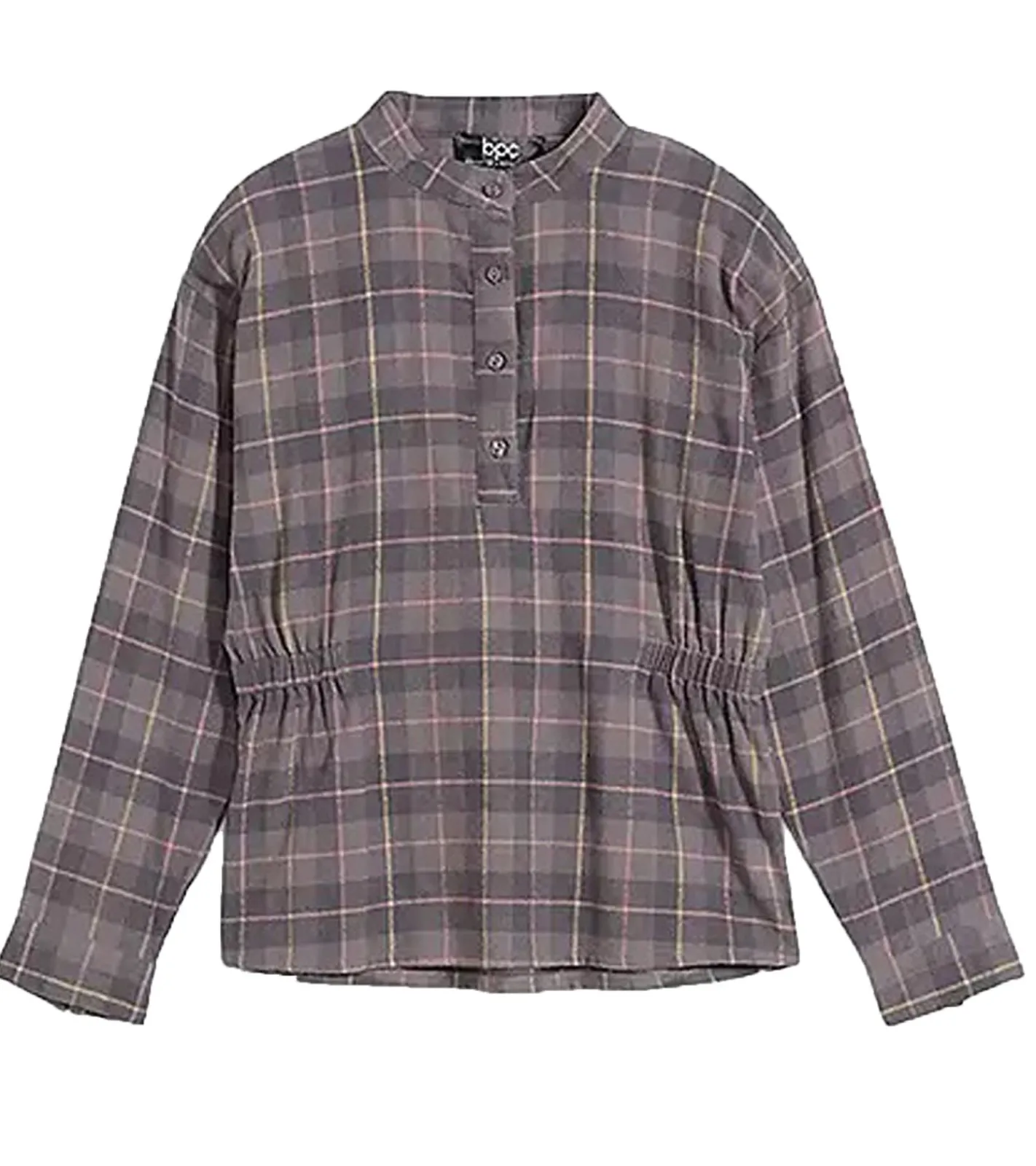 Kinder Flanell-Bluse für Mädchen Baumwoll-Shirt mit Raffung an der Taille mit Knopfverschluss 930775 Grau/Rosa