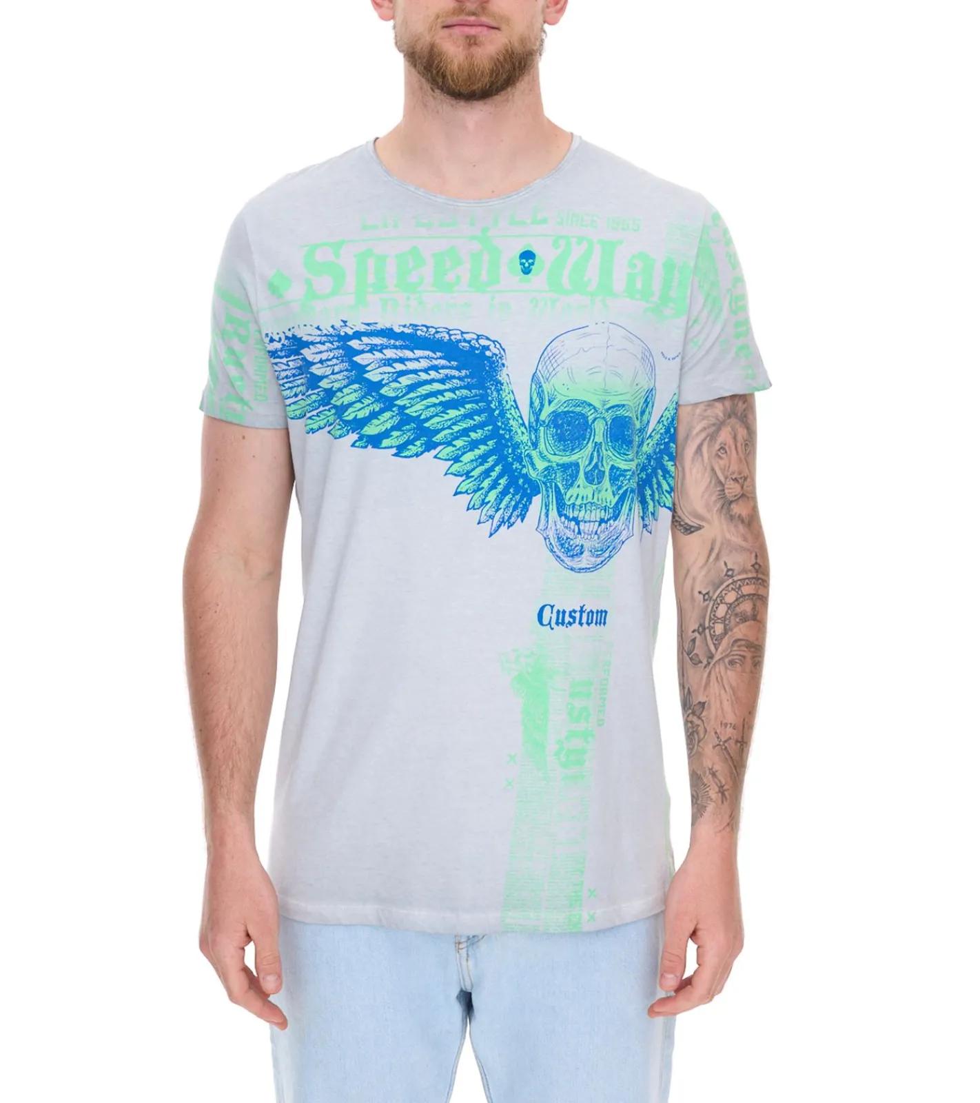 - Dieses modische T-Shirt für Herren besticht mit seinem trendigen Totenkopf-Look