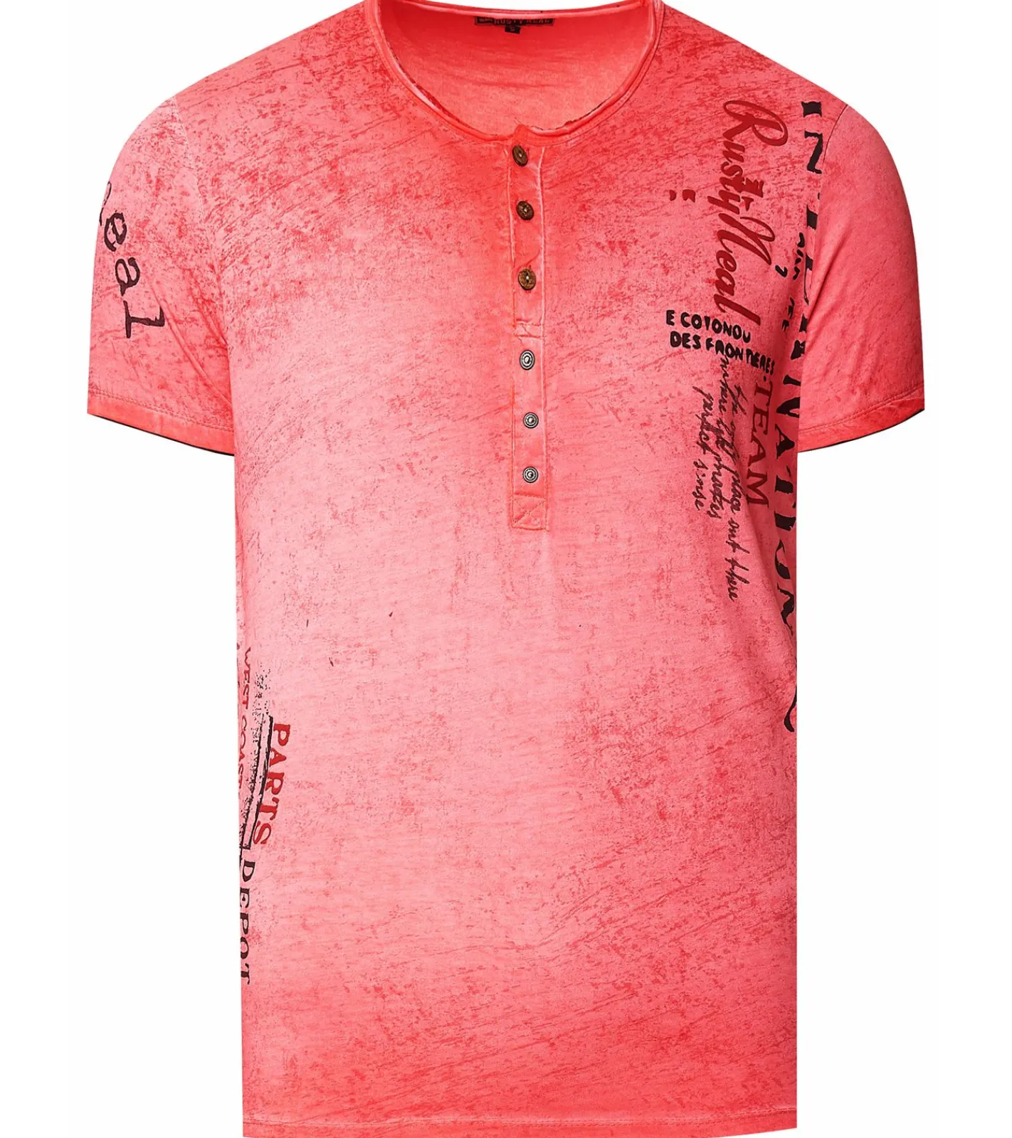 Herren T-Shirt mit seitlichem Print Baumwoll-Shirt modisches Kurzarm-Shirt R-15243 Rot