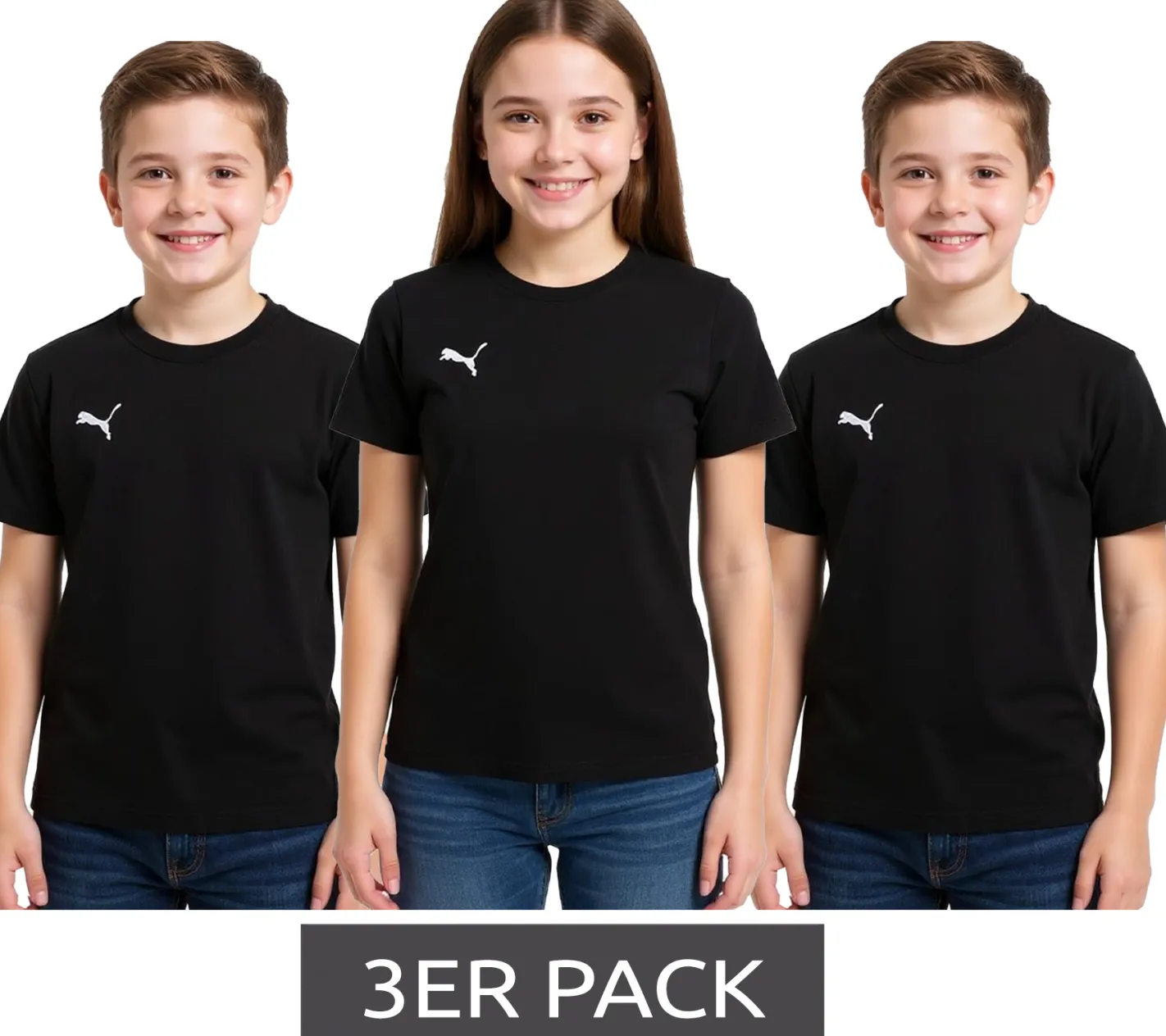3er Pack PUMA TeamGoal 23 Casual Kinder Sport-Shirt für Jungen & Mädchen Baumwoll T-Shirt mit Logo-Stickerei 656709 03 Schwarz