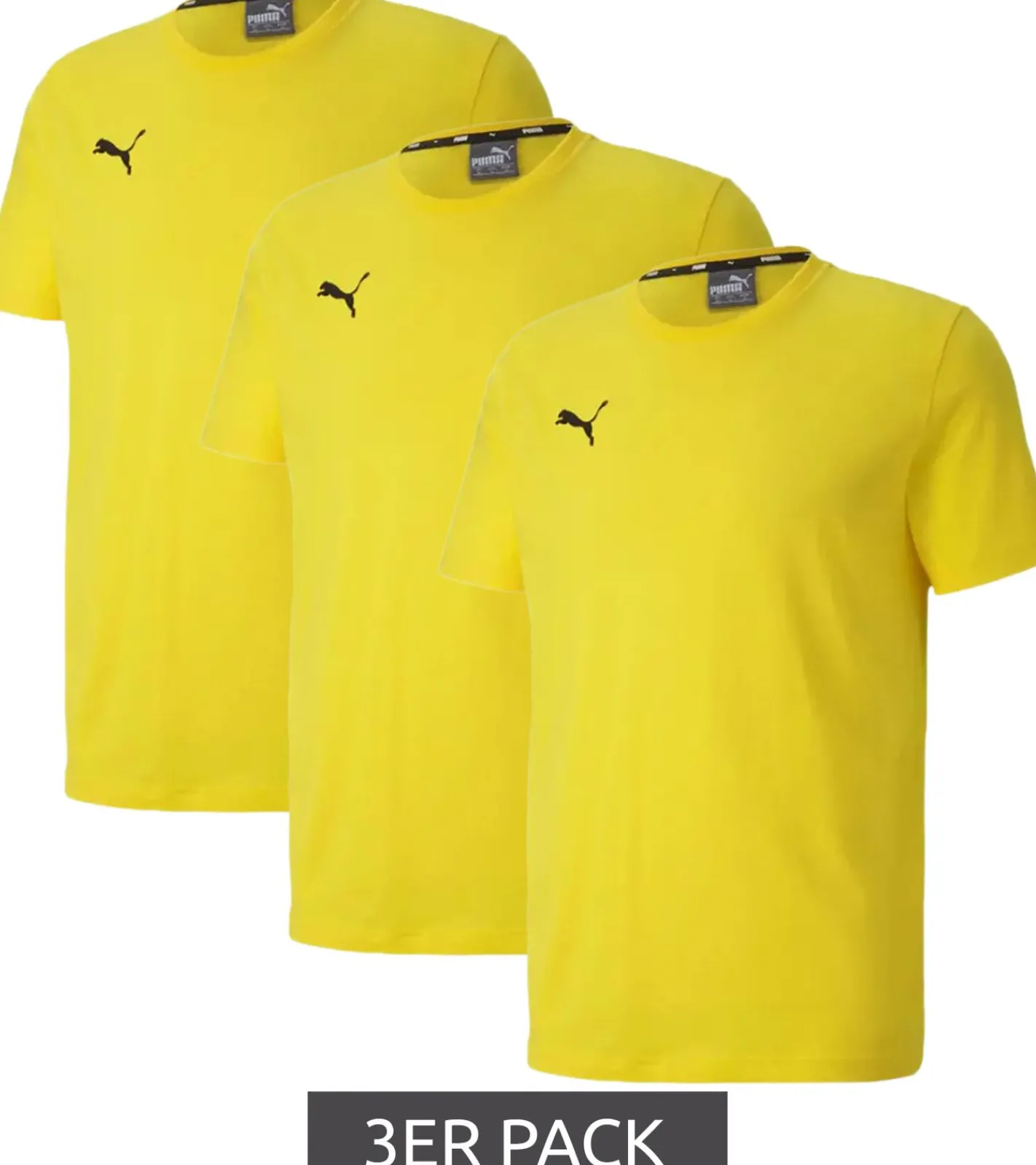 3er Pack PUMA TeamGoal 23 Casual Kinder Sport-Shirt für Jungen & Mädchen Baumwoll T-Shirt mit Logo-Stickerei 656709 07 Gelb