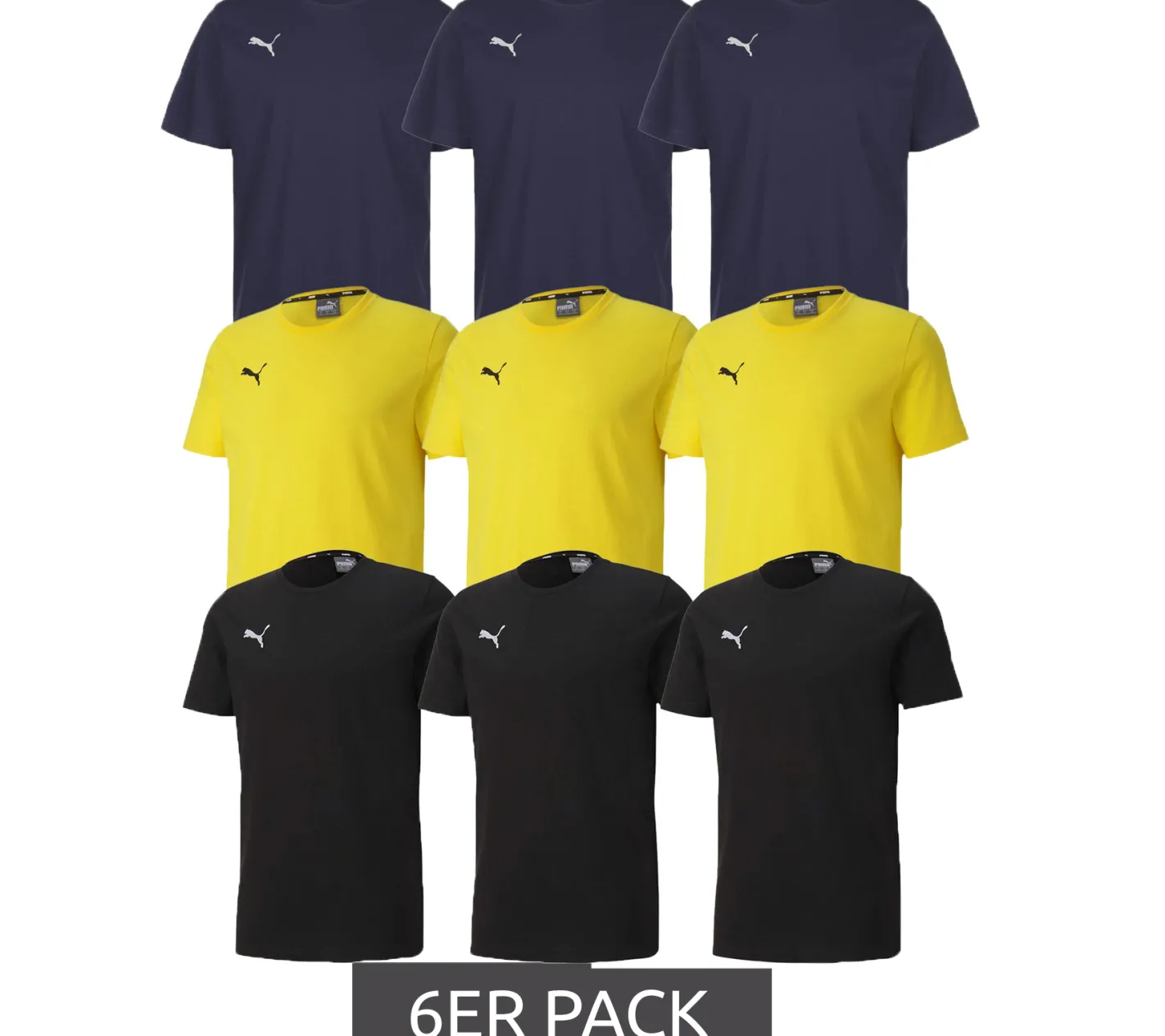 6er Sparpack Puma TeamGOAL 23 Casual Herren Baumwoll-Shirt mit Logo-Stickerei schlichtes T-Shirts 656578 Schwarz, Navy oder Gelb