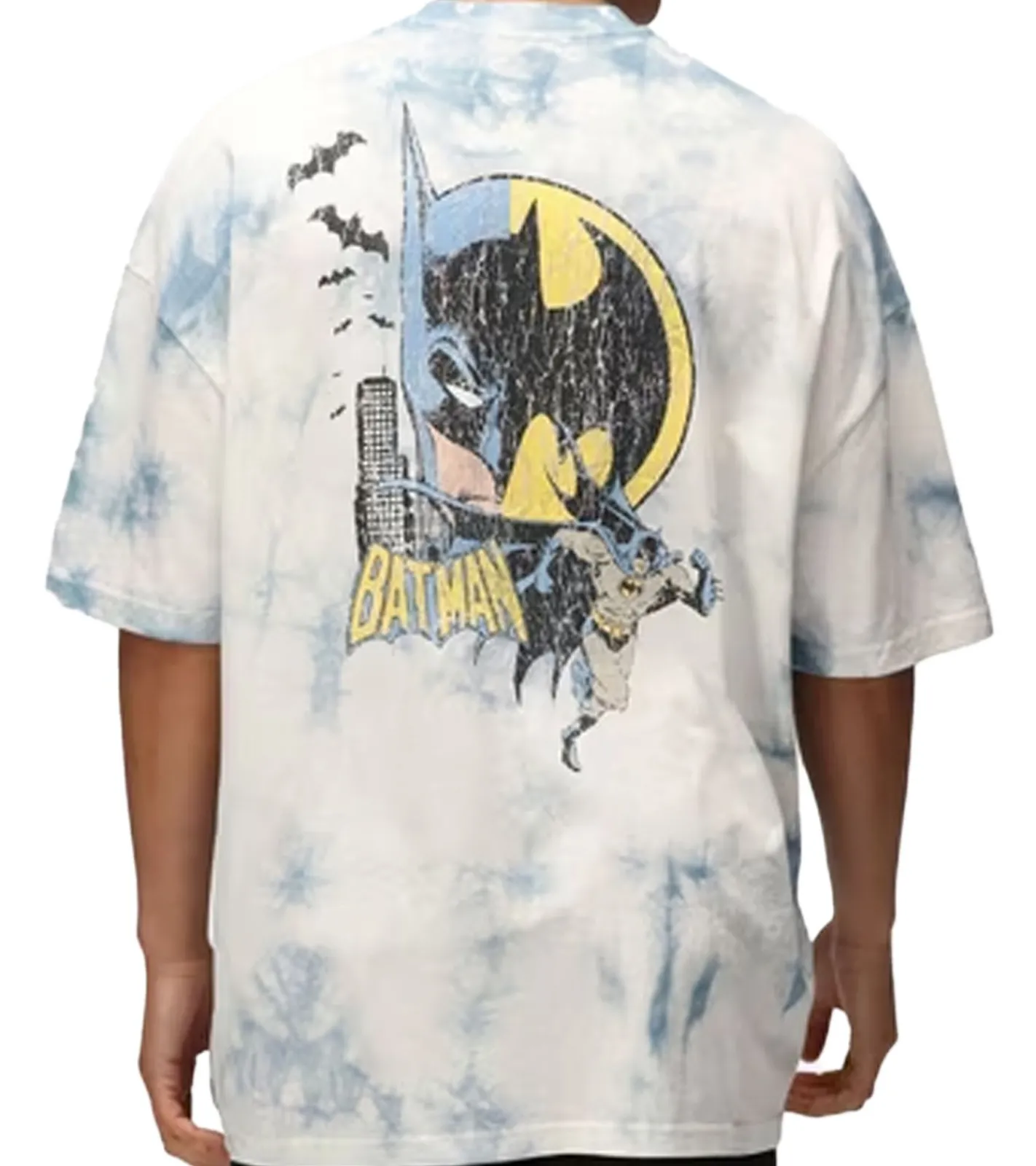 RE:COVERED X DC Herren T-Shirt BATMAN Split Baumwoll-Shirt im Batik-Design Rundhals-Shirt RCWARN553 Grau