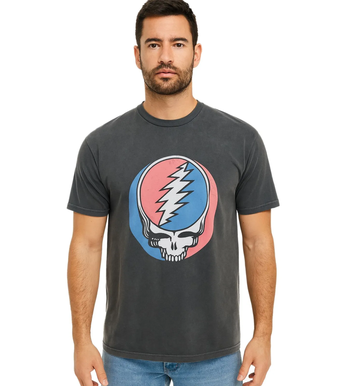 RE:COVERED X Grateful Dead Herren T-Shirt mit großem Bandlogo Baumwoll-Shirt Kurzarm-Shirt RCWBROS169 Grau