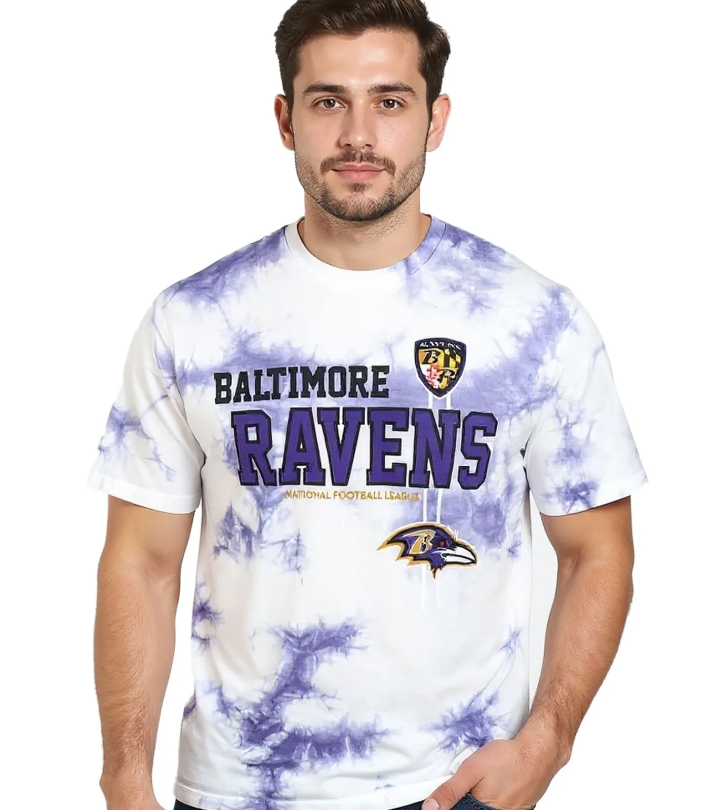 RE:COVERED X NFL Baltimore Ravens Herren T-Shirt mit Logo-Print Baumwoll-Shirt Rundhals-Shirt RCNFL1391 Lila/Weiß