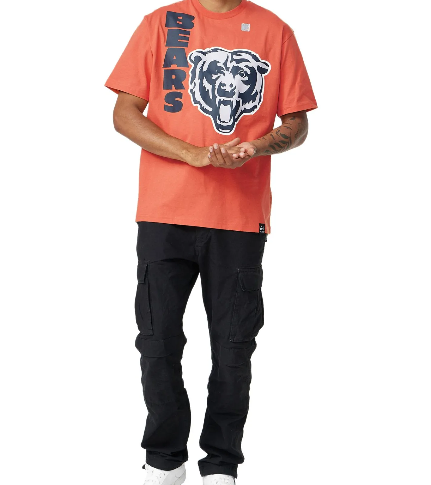 RE:COVERED X NFL Herren T-Shirt mit großem BEARS Logo-Print Baumwoll-Shirt Rundhals-Shirt MMNFL1140 Orange