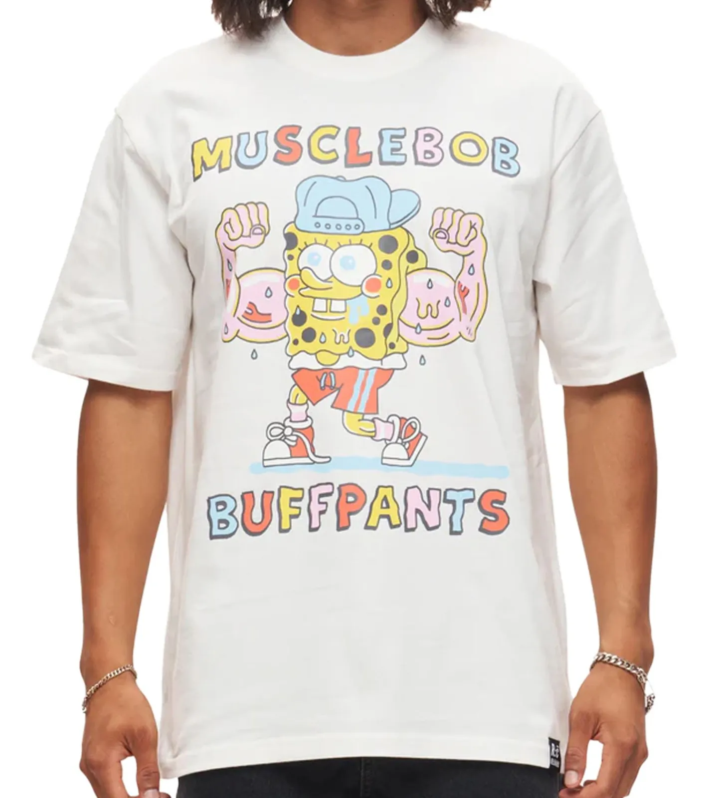 RE:COVERED X nickelodeon Herren T-Shirt SpongeBob Schwammkopf Baumwoll-Shirt Rundhals-Shirt RCVCM684 Ecru-Weiß