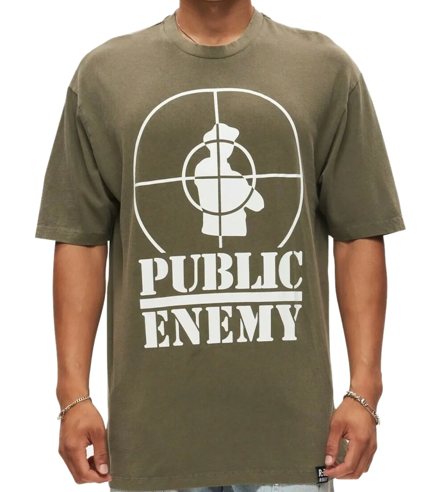 RE:COVERED X PUBLIC ENEMY Herren T-Shirt Baumwoll-Shirt mit großem Print Rundhals-Shirt RCBVD3836 Khaki