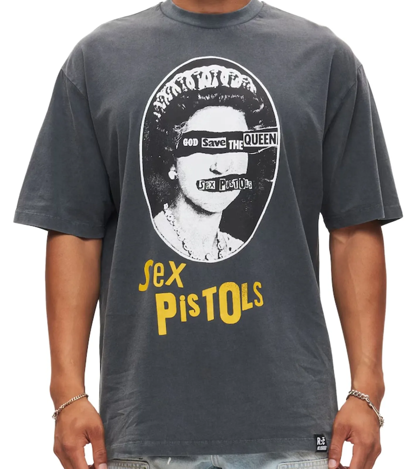RE:COVERED X Sex Pistols Herren T-Shirt God Save the Queen Baumwoll-Shirt mit großem Print Rundhals-Shirt RCBVD3843 Grau