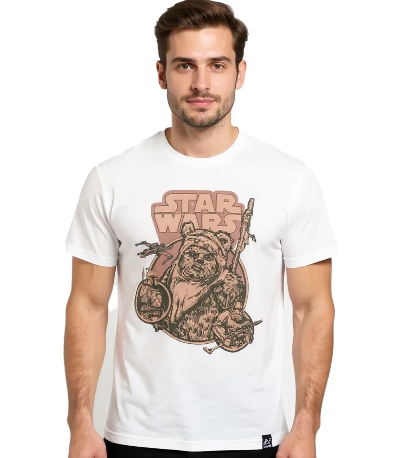 RE:COVERED X STAR WARS Herren T-Shirt mit Ewok Print Baumwoll-Shirt Kurzarm-Shirt RCDIF2044 Ecru-Weiß