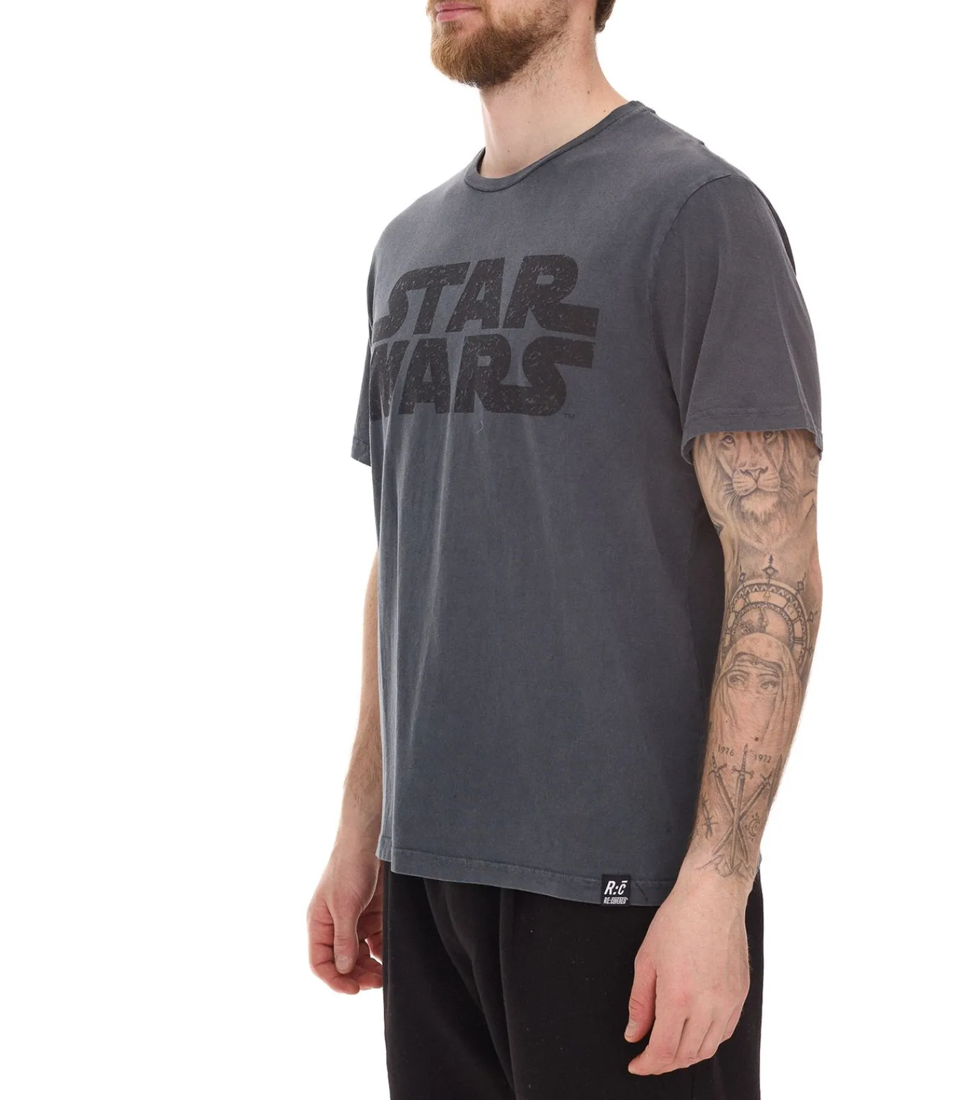 RE:COVERED X STAR WARS Herren T-Shirt mit Vintage Logo-Print Baumwoll-Shirt Kurzarm-Shirt PCSTW1998 Dunkel-Grau