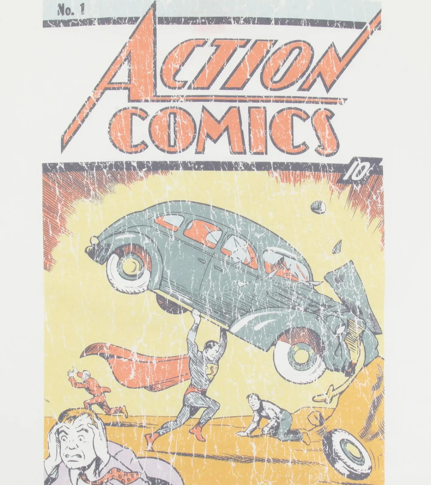 RE:COVERED X SUPERMAN DC Herren T-Shirt mit Comic-Print Baumwoll-Shirt Rundhals-Shirt RCWARN556L Ecru-Weiß