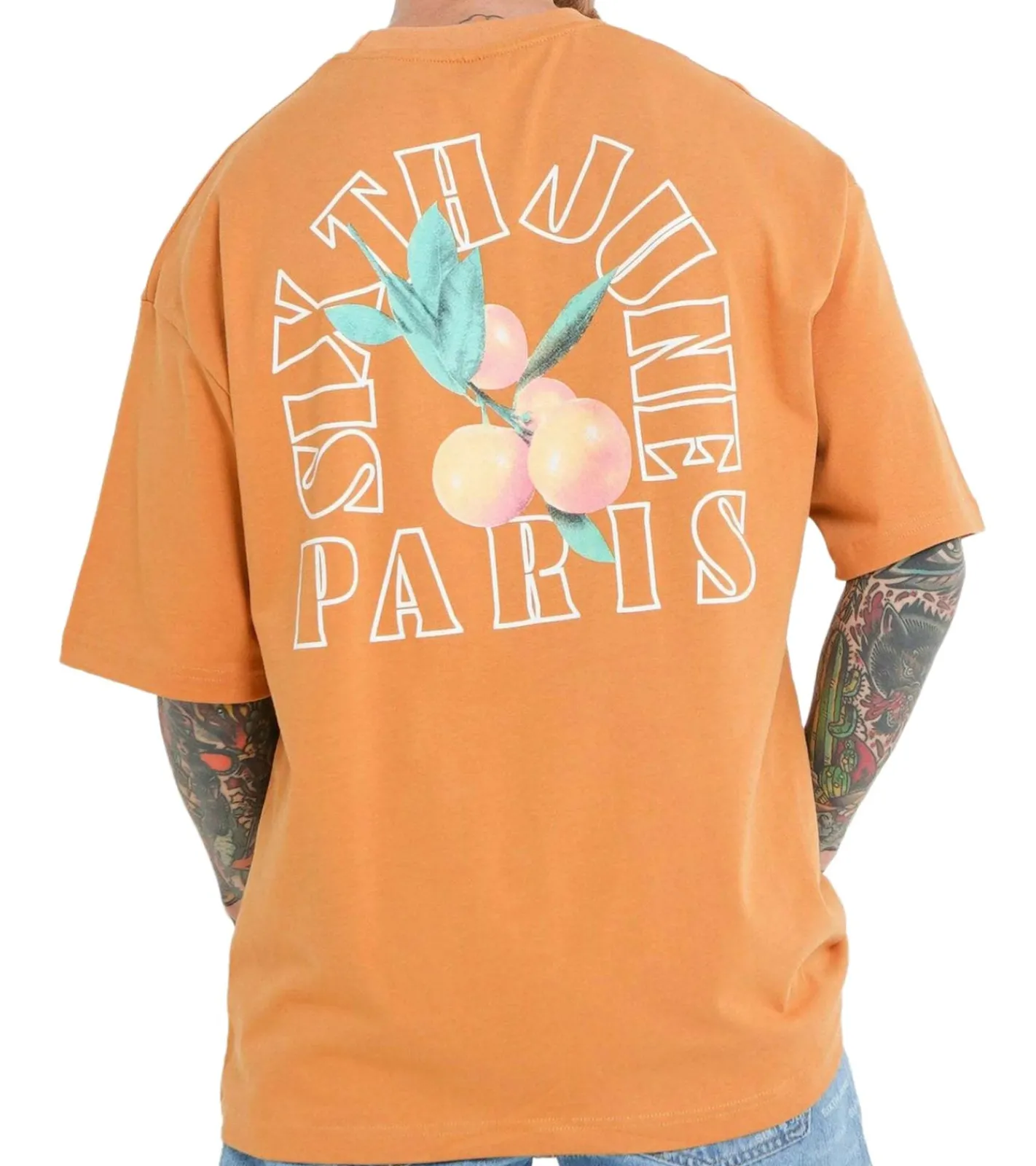 Sixth June Fruit Herren Baumwoll-Shirt mit Orangen-Rückenprint Kurzarm-Shirt T-Shirt Rundhals-Shirt M23650ETS Orange