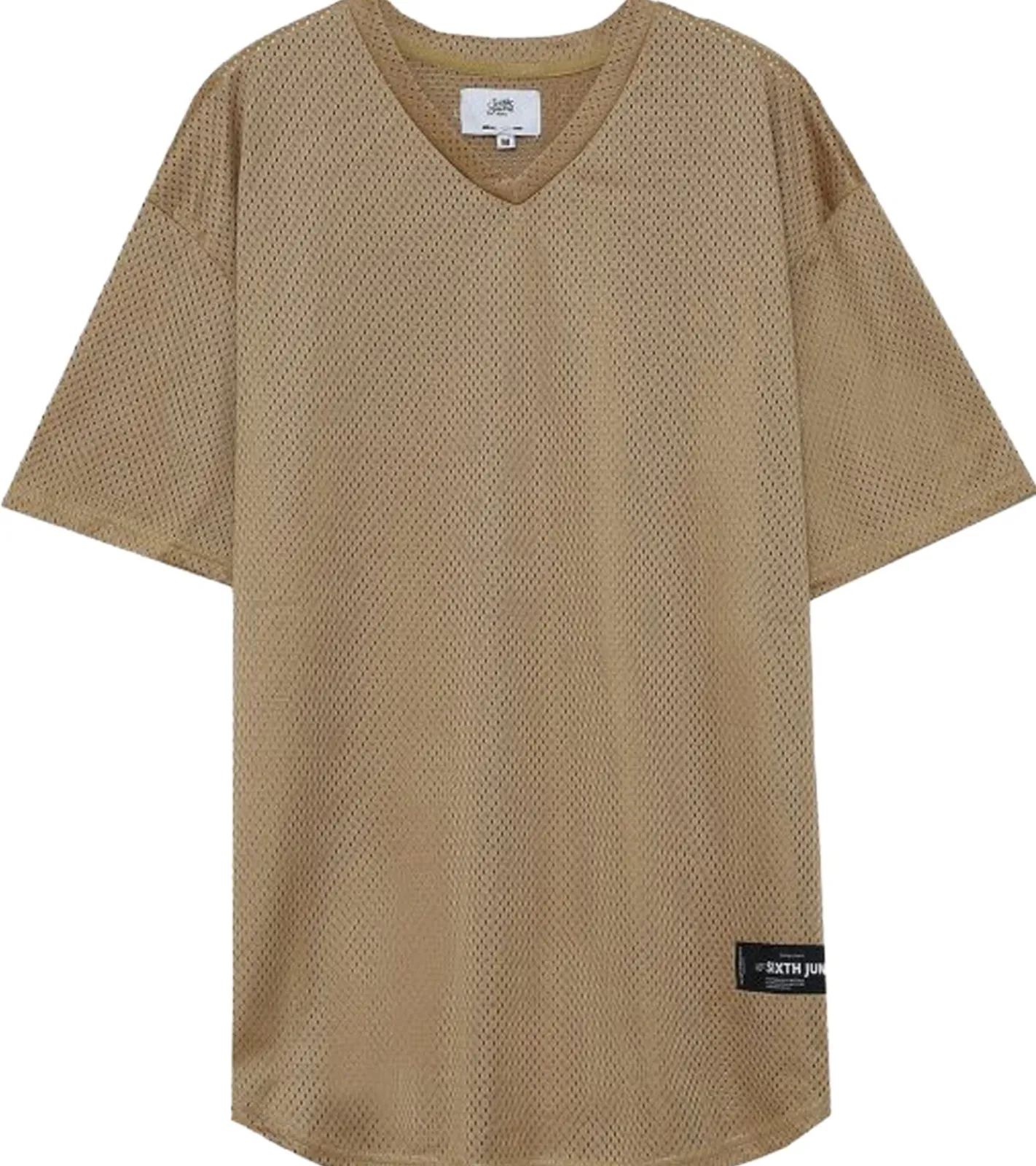Sixth June Herren Basic-Shirt Freizeit-Shirt T-Shirt mit V-Ausschnitt Kurzarm-Shirt 4191 Beige