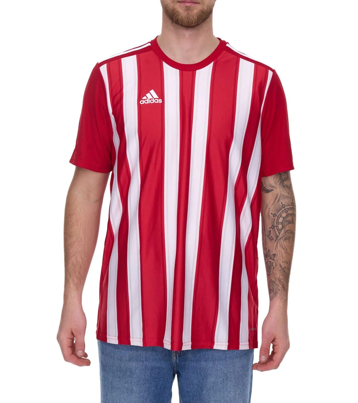 adidas Striped 21 Herren Sport-Shirt nachhaltiges Trainings-Shirt mit AEROREADY-Technologie gestreiftes Fitness-Oberteil GN7624 Rot/Weiß