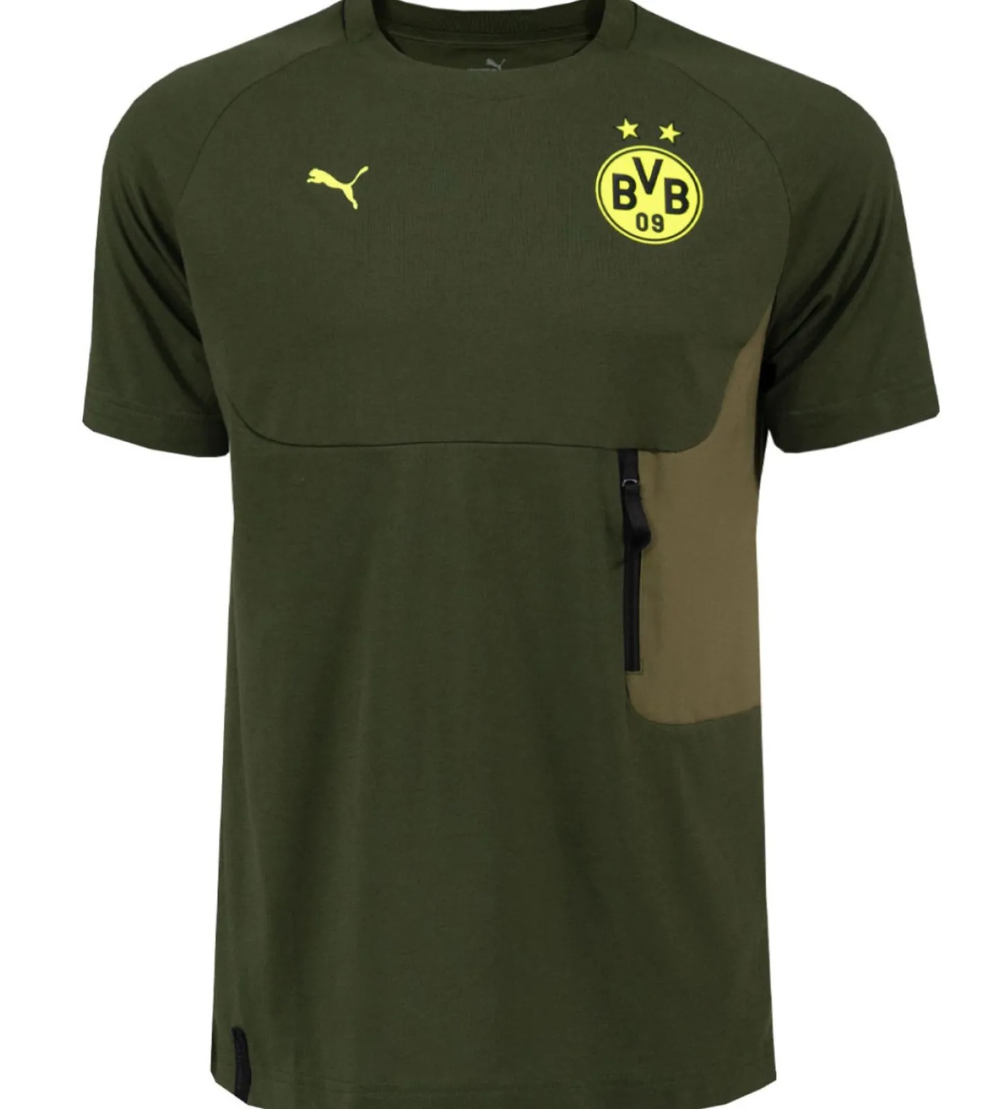 - Hier ist das neue PUMA Borussia Dortmund Pumatech Pocket 2024-2025 T-Shirt in Dunkelgrün