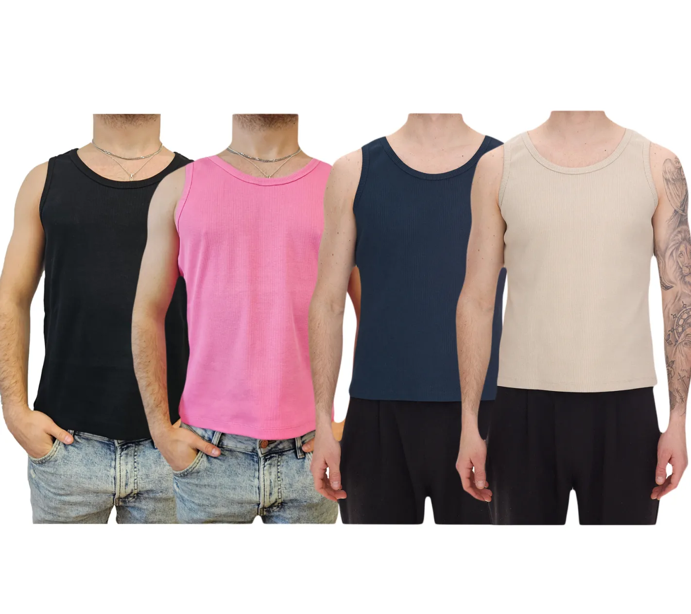 STONES Herren Tank Top modernes Shirt aus Baumwolle Rundhals-Top Muskel-Shirt Unterhemd Dunkelblau, Schwarz, Pink oder Beige