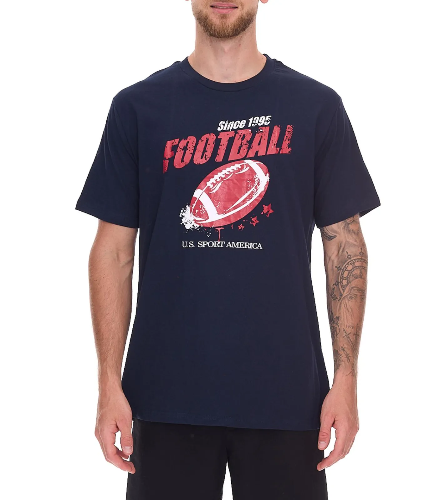 2er Pack U.S. SPORT AMERICA Herren T-Shirt Basic Baumwoll-Shirt Rundhals-Shirt Kurzarm Blau/Weiß